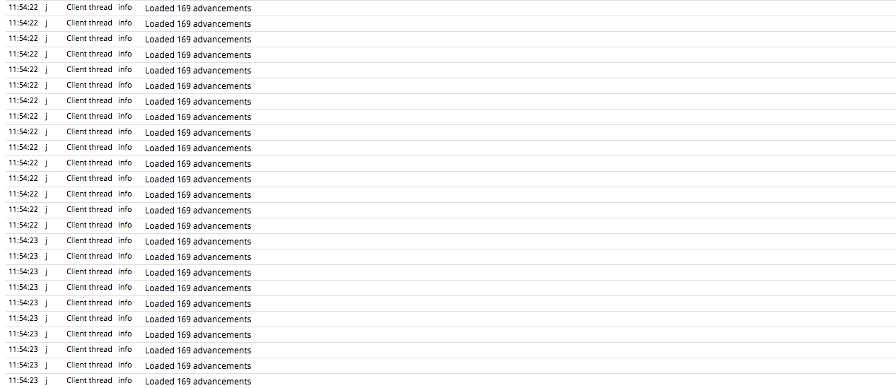 In the most recent snapshots, when you use the tick, or arbitrary_player_tick triggers, it will spam the console with "Loaded 'X' Advancements". This can cause quite a bit of lag, and it is next to impossible to find an error within this slew of messages.