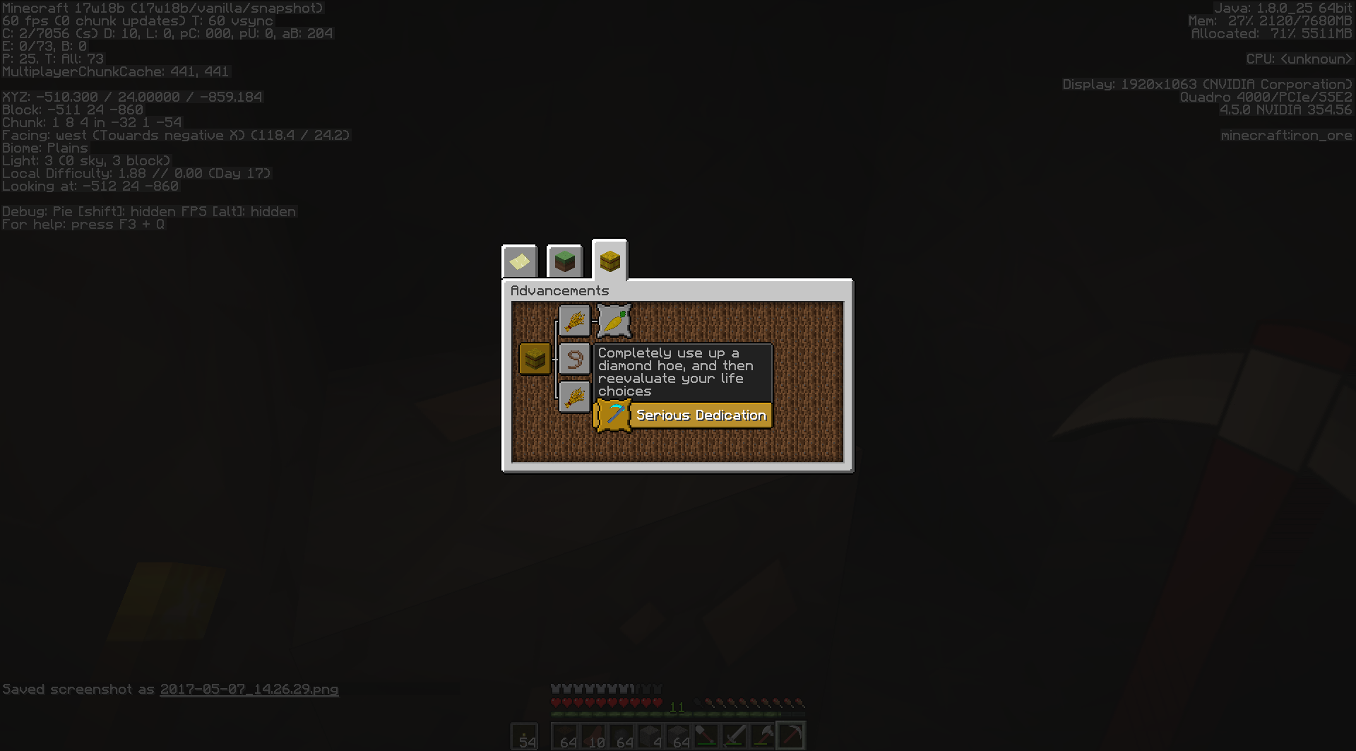 So my assumption is that on breaking a iron pickaxe you get the Serious Dedication Advancement in the Husbandry tab. Please Fix This Problem.