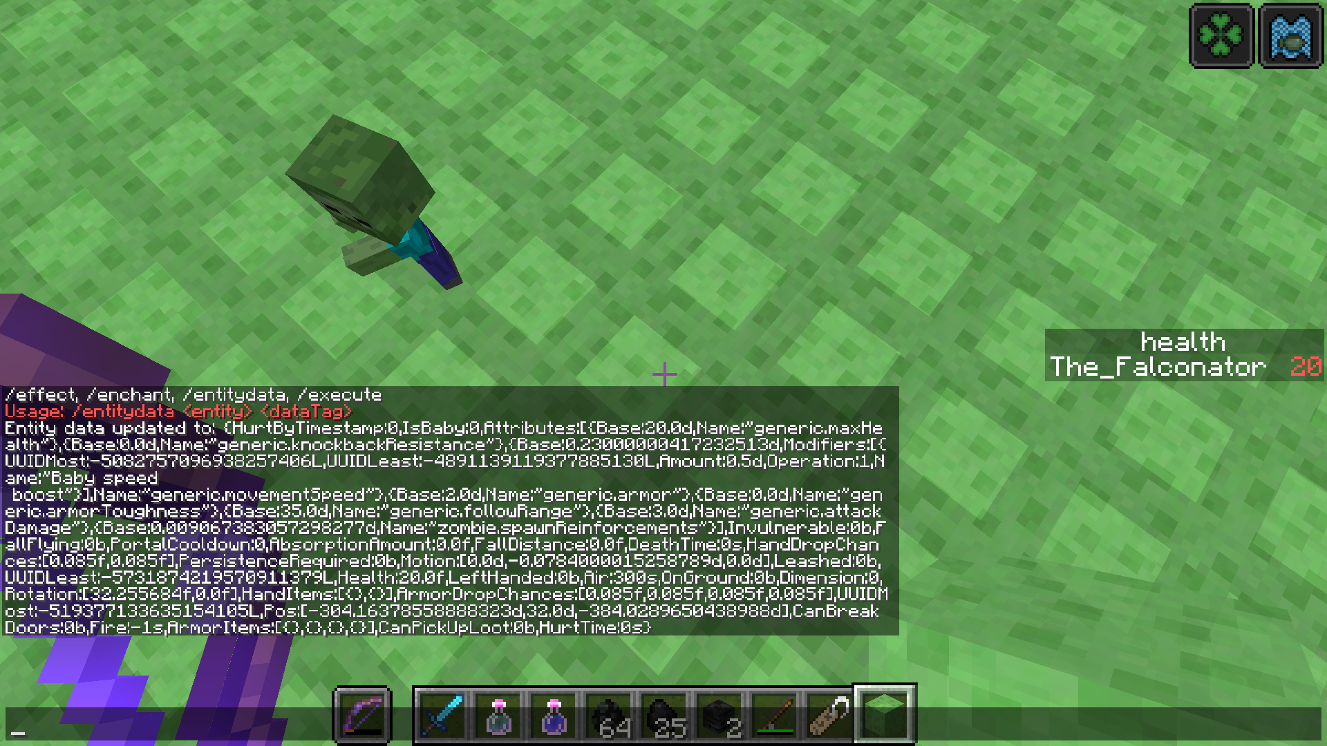 6. Use the command /entitydata @e[type=zombie,c=1] {Null:1}