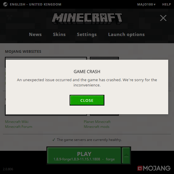 me mc i just crashing can play mc for a month "an unexpected issue occurred and the game has crashed. were sorry for the inconvenience is it just saying every time!