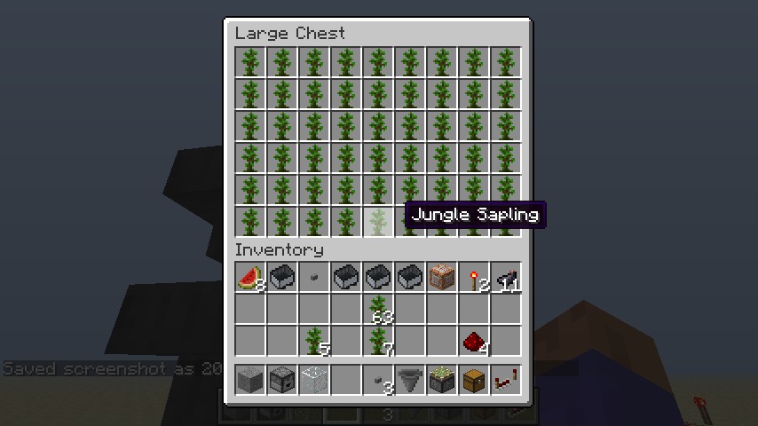 If a hopper has an item (jungle sapling) thrown in and a chest (Full of stacks of 1 jungle sapling) near it, it will ignore the chest and go to the next hopper. However, an item that has been placed manually will go into the adjacent chest. This is NOT a duplicate of MC-6162 because that issue does not feature this bug. Please do not flag this under that duplicate.