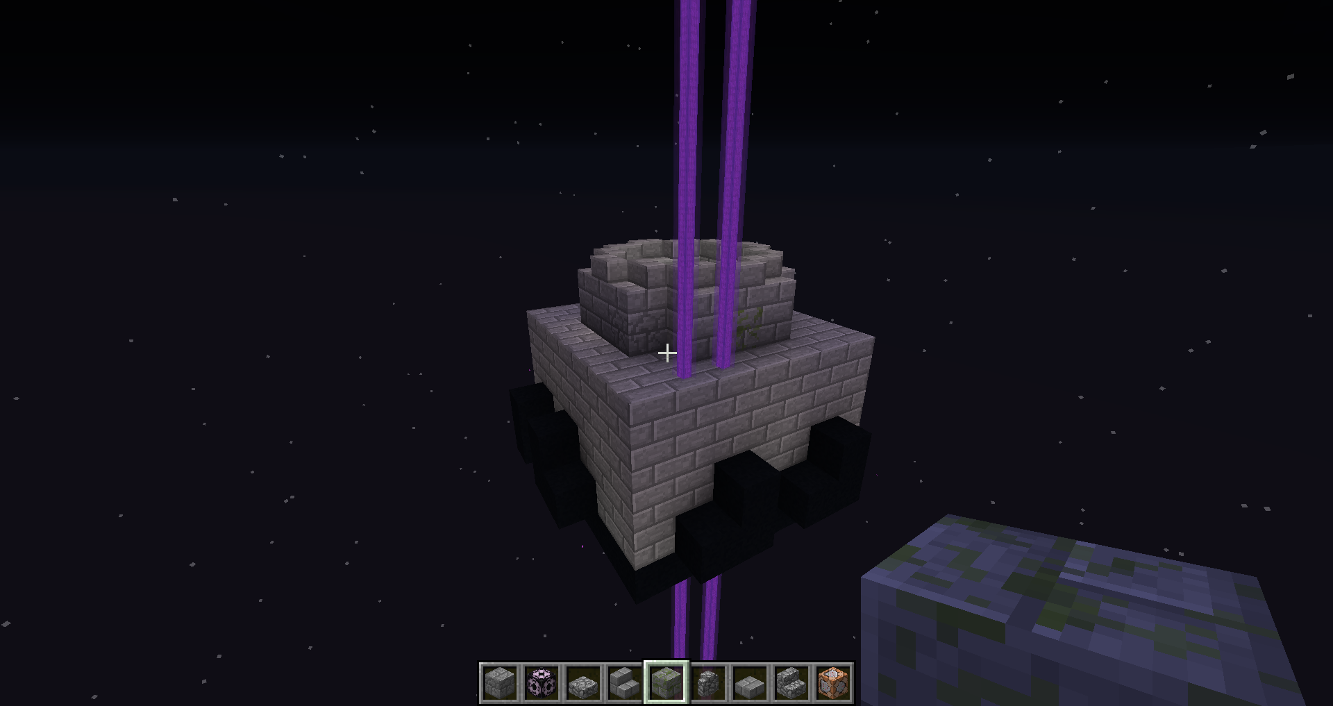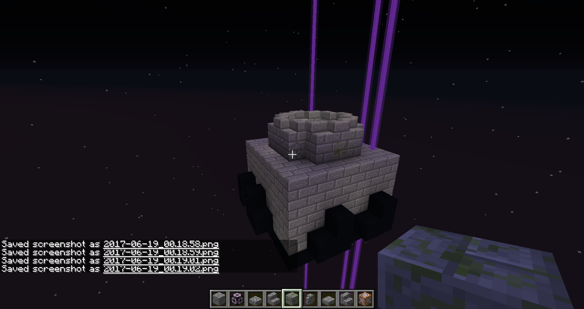 The end gateway seems to think a mob is in it, while in the overworld, but none is there. It'q really frusttrating to build with, but it doesn't cause anything else than to spawn that purple beam.