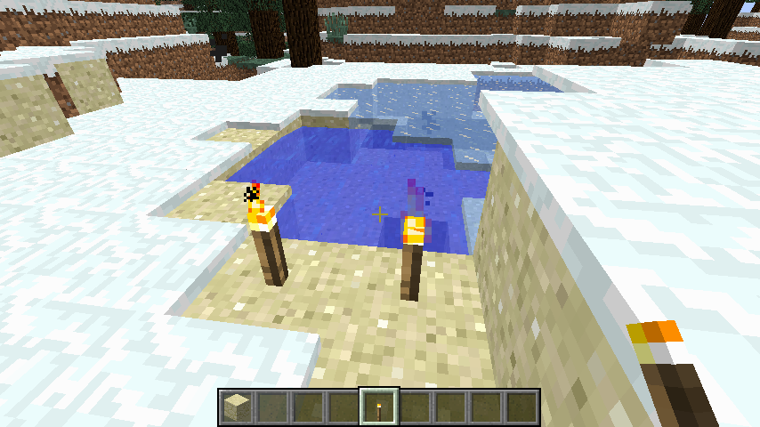 When I place torches in front of water, if the water is directly behind where I placed the torch then particles appear underwater. This also happens when the torch is in front of ice. It happens in all game modes in both single and multi player.