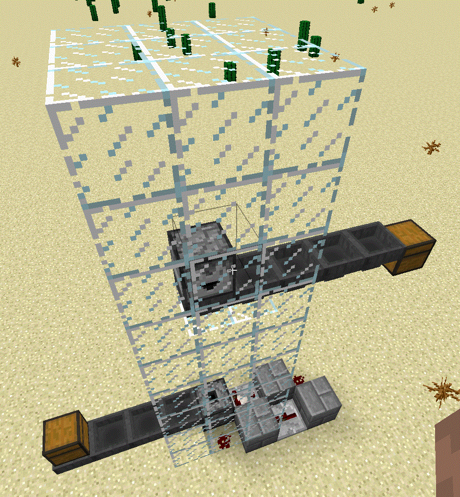 Put items in the bottom chest, place yourself at the top of the item elevator. You will receive less items than you put in the chest and all containers will be empty.
