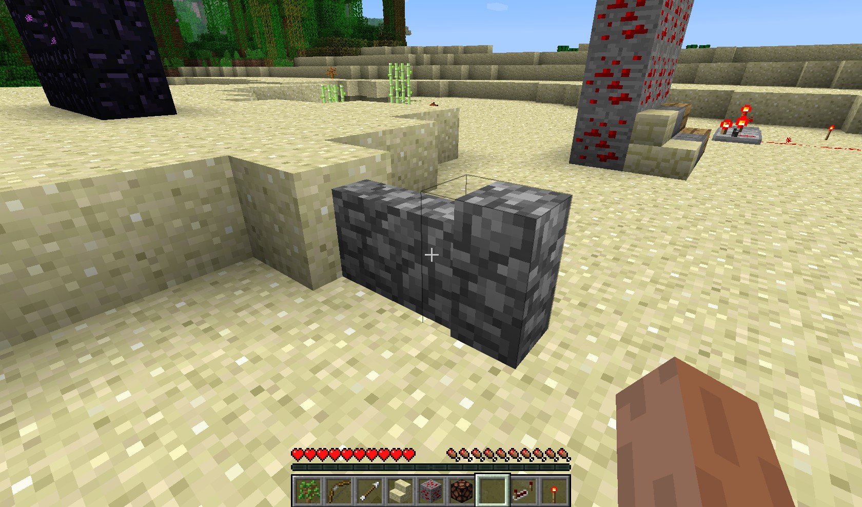 In survival or adventure mode, one is damaged by jumping off of Cobblestone or Mossy Cobblestone fences, the damage value is around 1/2 of a heart.