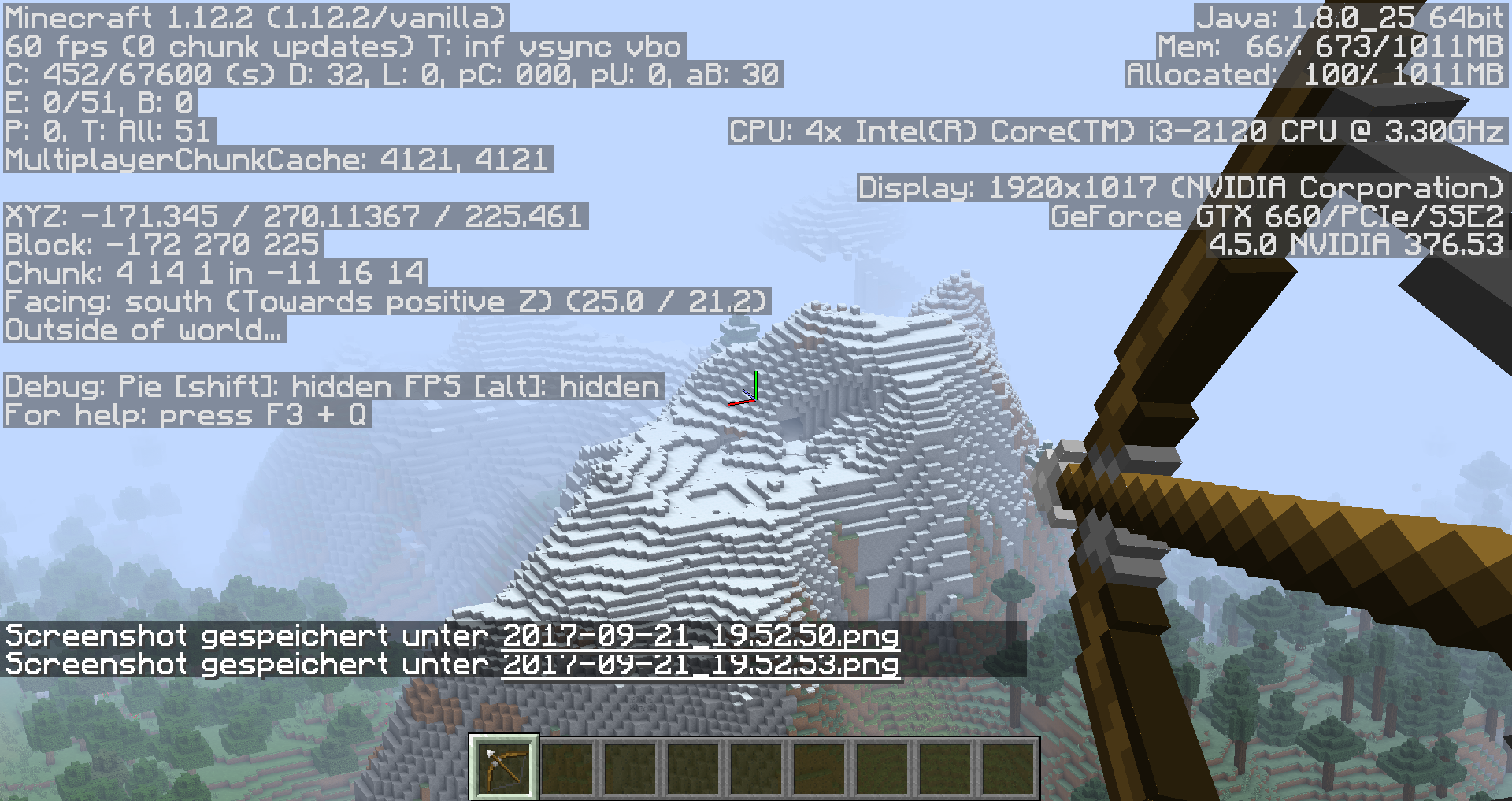 At 32 chunks render distance snow layer in the distance have randomly small gray parts in the snow. I set the FOV to 30, gave myself a slowness 77 effect and used a bow to zoom in.