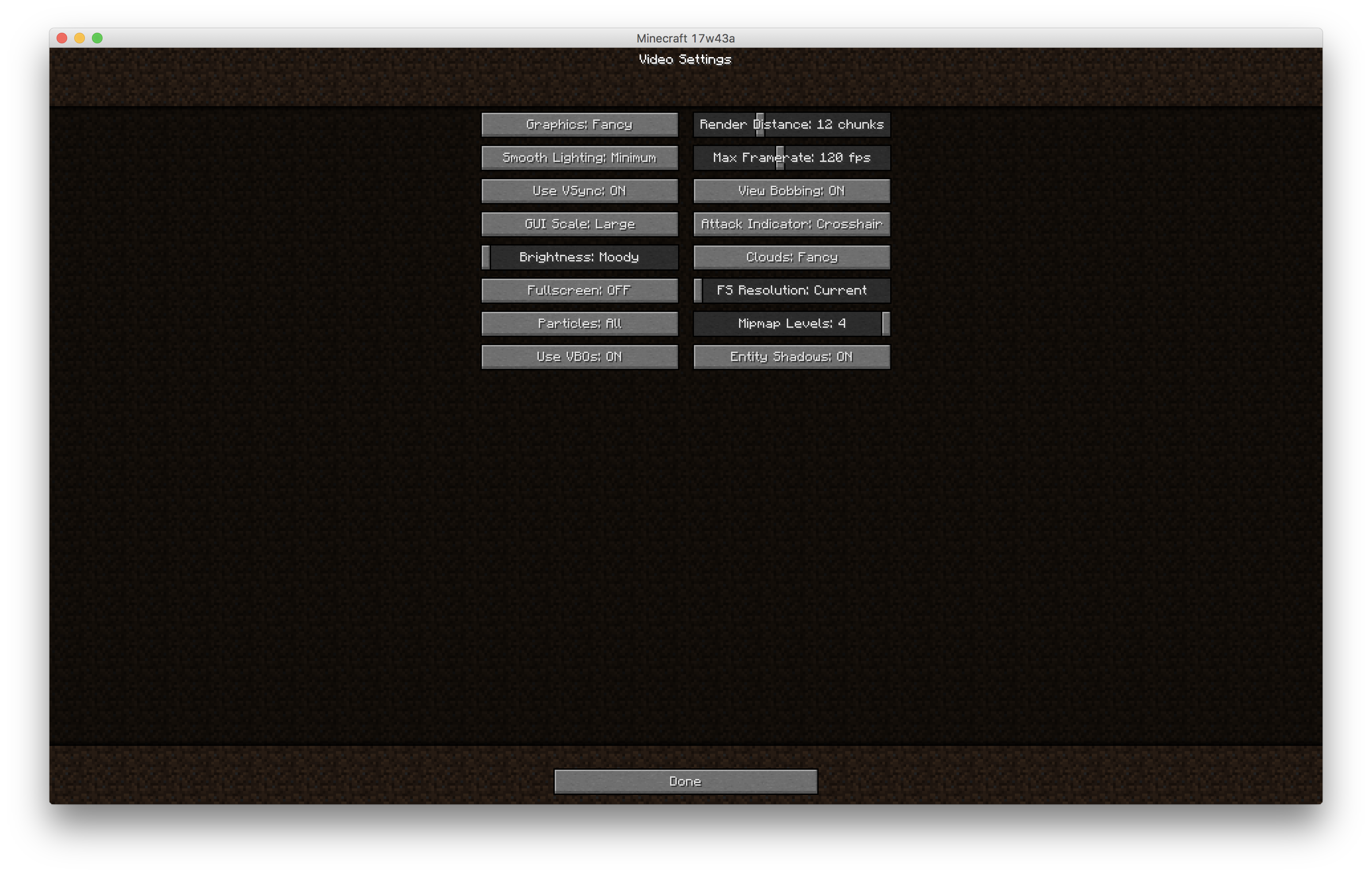 In 1.12.2, Normal scale gave buttons that were approximately 10mm tall. In 17w43a, Normal scale now gives buttons that are about 5mm tall. All the scales see the same changes except Auto. Auto in 1.12.2 uses the "large" scale (for better or for worse) in 1.12.2, however in 17w43a, the buttons are even larger.