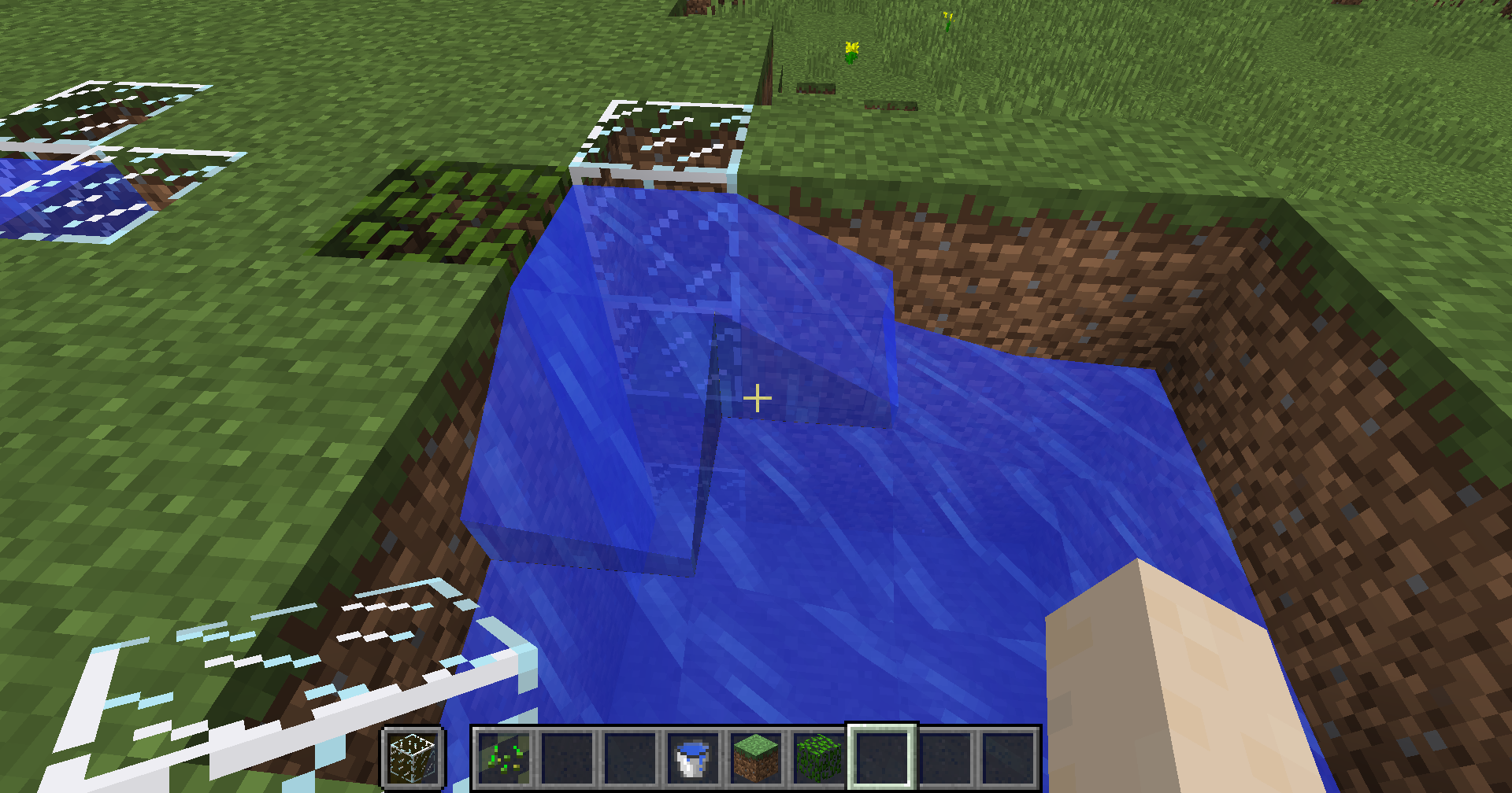 /fill ~1 ~ ~1 ~3 ~5 ~3 glass hollow /setblock ~2 ~5 ~2 flowing_water→ ❌ You dove up faster