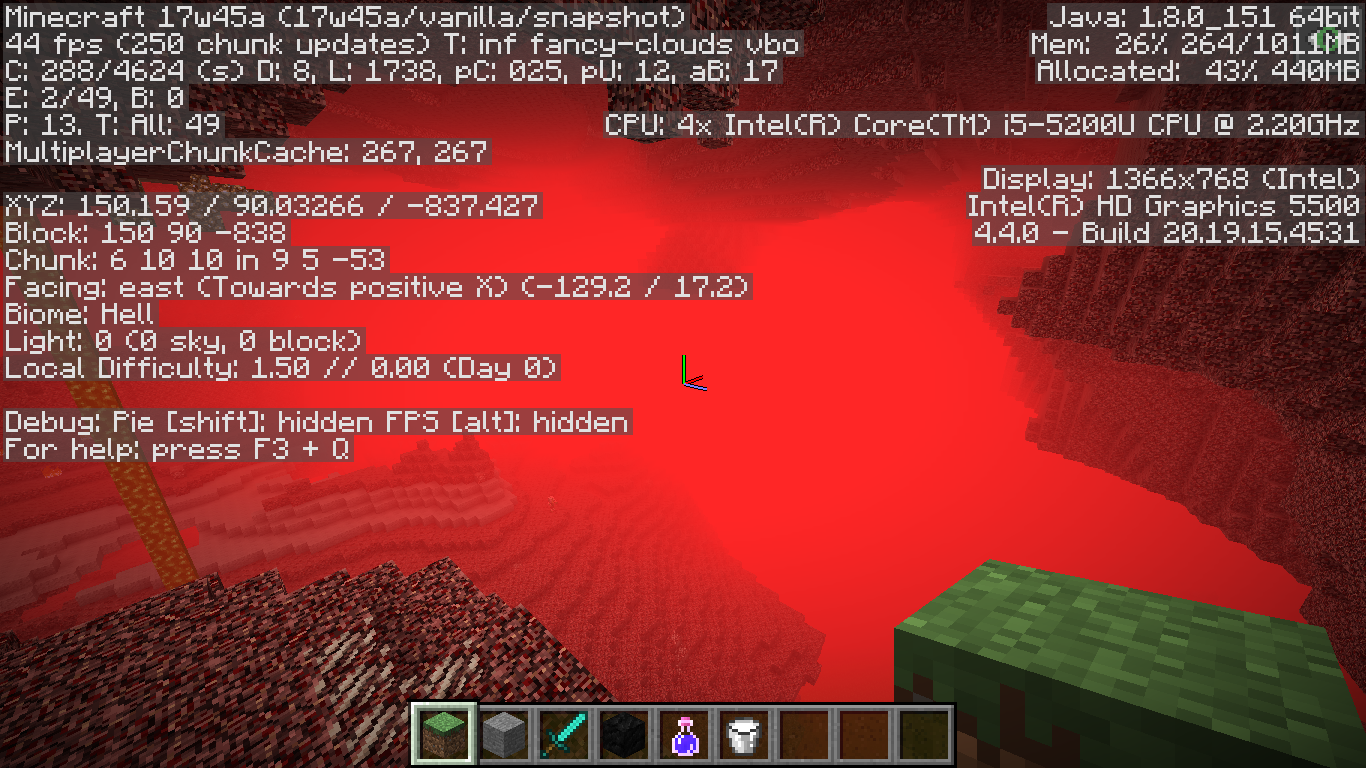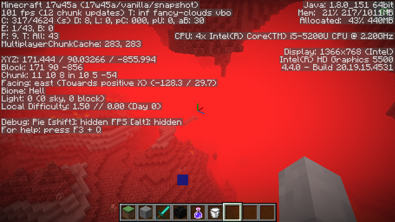 As you can see flying around anywhere in the nether also tried the overworld will result in fps drop with sprint and or just plain flying. Normally my fps is around 109-155 when flying with the standard resolution in the update my fps went down to 30.