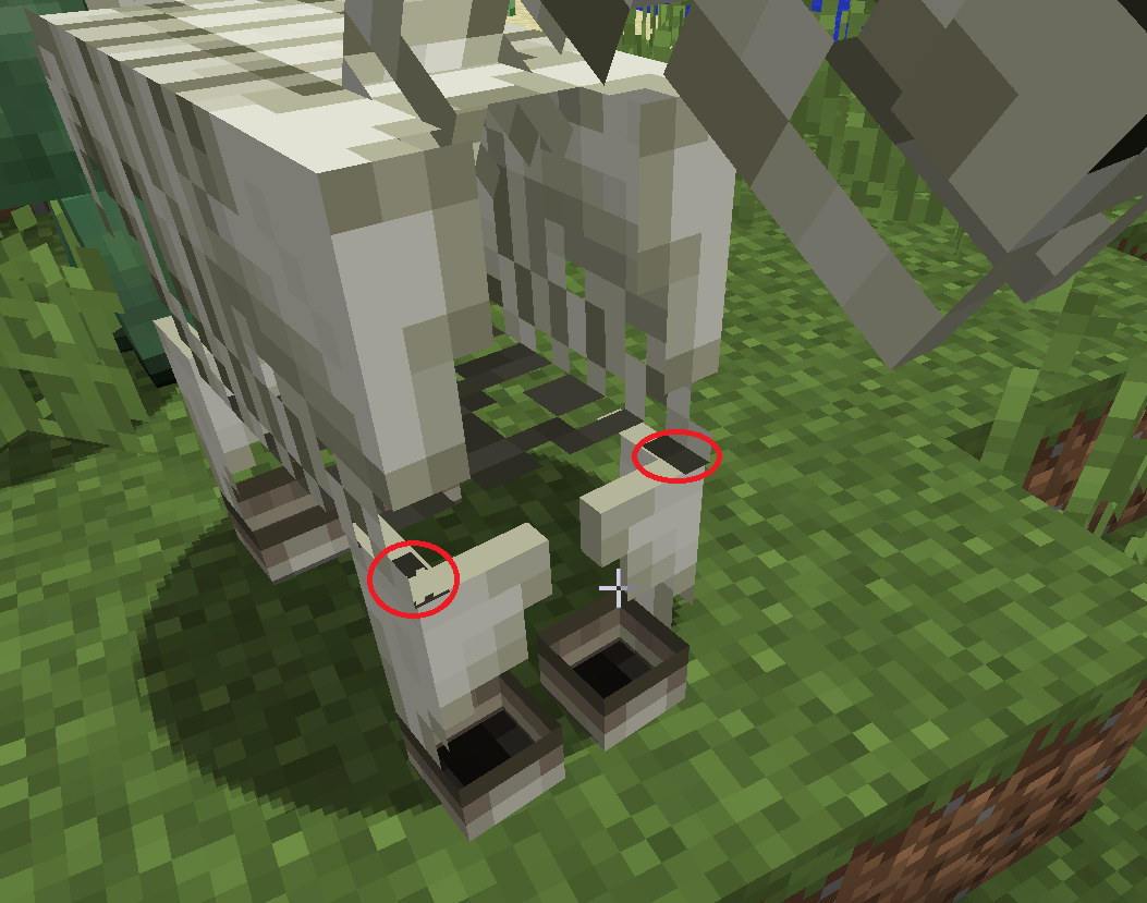With the updated horse models, there is some Z-Fighting where the skeleton horse's legs meet its body. (The top of the leg fights with the dark brown bits, see image)