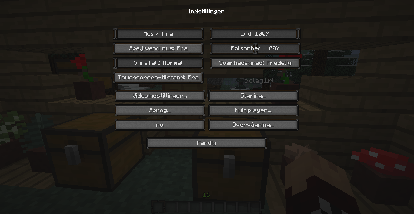 When using Danish language, then the texturepack button says "no" instead of "teksturpakke". I'm pretty sure thats a bug...