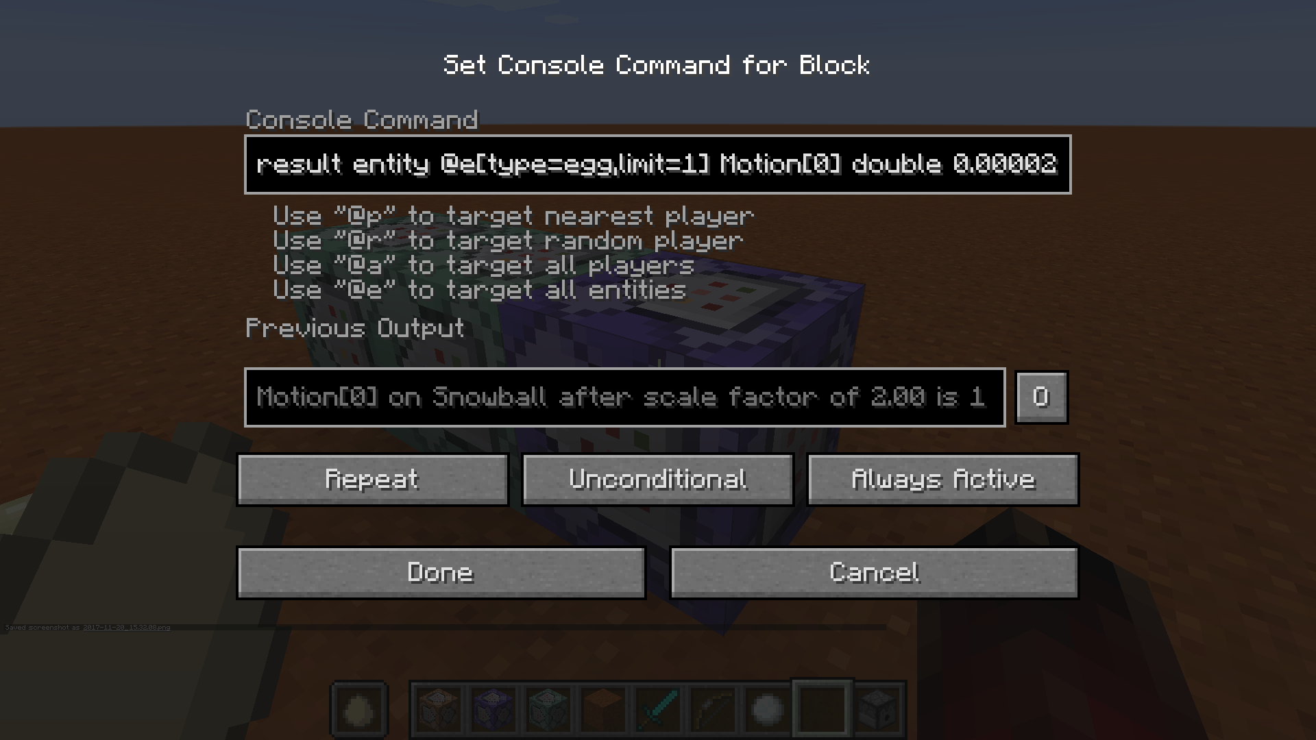 /execute store result entity @e[type=egg,limit=1] Motion[2] double 10 run data get entity @e[type=snowball,limit=1] Motion[2] 100Shall I update the information, or let the issue close?