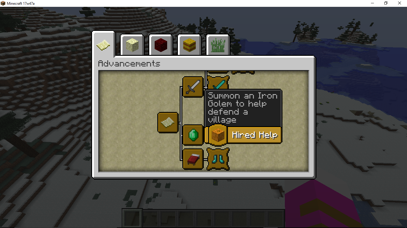 The advancement for making an Iron Golem shows a non-carved pumpkin even thow you cannot make an Iron Golem with a non-carved pumpkin!