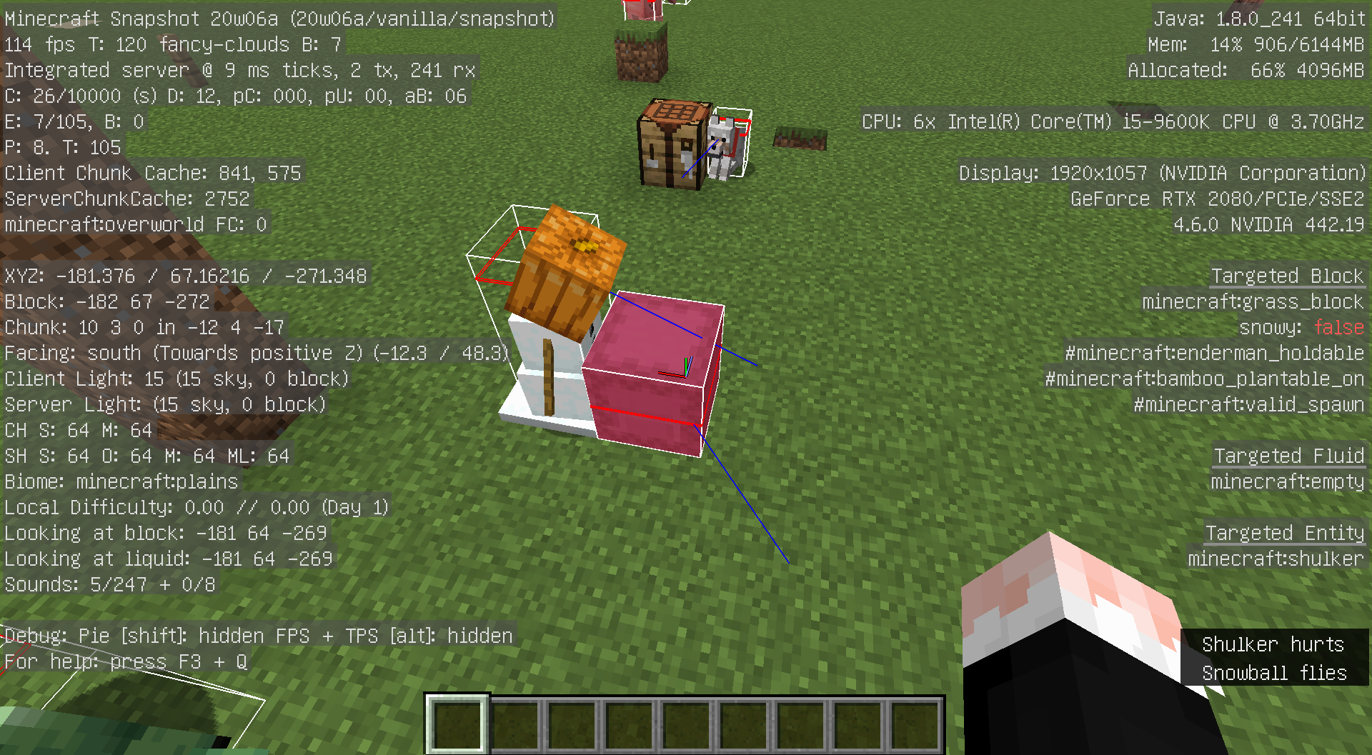 Projectiles created by the player can still ignore collisions with the player that created them even after the projectile leaves the player's hitbox and collides with it again shortly after. This is most noticeable with arrows and splash potions, especially when throwing them straight up. The easiest way to reproduce this is by sneaking over the edge of a block while in at least 3 deep water and throwing a splash potion straight up. The splash potion will travel up, go outside of the player's hitbox, fall back down, completely ignore collisions with the player's hitbox, and continue sinking down in the water until it lands on a block below.