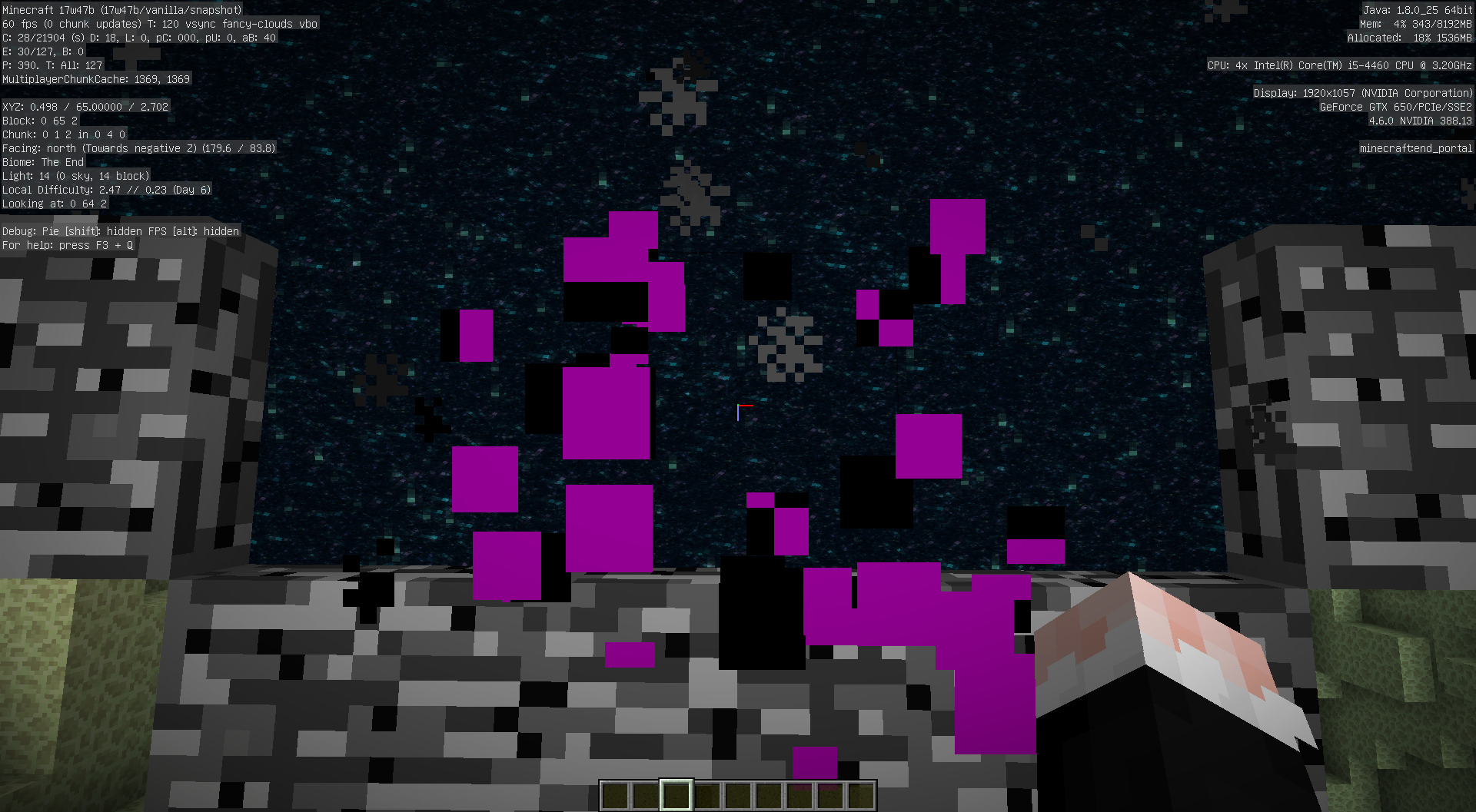 Minecraft 17w47a, Minecraft 17w47b, Minecraft 17w48a, Minecraft 17w49a, Minecraft 17w49b, Minecraft 17w50a, Minecraft 18w01a, Minecraft 18w02a, Minecraft 18w03a, Minecraft 18w03b, Minecraft 18w05a, Minecraft 18w06a, Minecraft 18w07a, Minecraft 18w07b, Minecraft 18w07c, Minecraft 18w08a, Minecraft 18w08b, Minecraft 18w09a, Minecraft 18w10a, Minecraft 18w10b, Minecraft 18w10c, Minecraft 18w10d, Minecraft 18w11a, Minecraft 18w14a, Minecraft 18w14b, Minecraft 18w15a, Minecraft 18w16a, Minecraft 18w19b, Minecraft 18w20c, Minecraft 18w22b, Minecraft 1.13-pre1, Minecraft 1.13-pre6, Minecraft 1.13, Minecraft 18w30b, Minecraft 18w31a, Minecraft 18w32a, Minecraft 18w33a, Minecraft 1.13.1-pre1, Minecraft 1.13.1-pre2, Minecraft 1.13.1, Minecraft 1.13.2-pre1, Minecraft 1.13.2-pre2, Minecraft 1.13.2, Minecraft 18w43a, Minecraft 18w43b, Minecraft 18w43c, Minecraft 18w44a, Minecraft 18w48a, Minecraft 18w48b, Minecraft 18w49a, Minecraft 18w50a, Minecraft 19w11b, Minecraft 19w12b, Minecraft 19w13b, Minecraft 19w14a, Minecraft 19w14b, Minecraft 1.14.3, 1.14.4, 19w34a, 19w39a, 19w45a, 19w45b, 1.15 Pre-release 1, 1.15, 1.15.1, 1.15.2 Pre-release 2, 1.15.2, 20w06a, 20w07a, 20w08a, 20w09a, 20w10a, 20w11a, 20w12a, 20w13b, 20w18a, 20w21a, 1.16 Release Candidate 1, 1.16, 1.16.1, 1.16.2 Pre-release 1, 1.16.2 Release Candidate 1, 1.16.2 Release Candidate 2, 1.16.2, 1.16.3, 1.16.4 Pre-release 1, 1.16.4 Release Candidate 1, 1.16.4, 20w45a, 20w46a, 20w51a, 21w03a, 1.16.5, 21w05a, 21w05b, 21w06a, 21w07a, 21w13a, 21w20a, 1.17 Pre-release 2, 1.17 Pre-release 5, 1.17 Release Candidate 1, 1.17.1 Release Candidate 1, 1.17.1, 21w37a, 21w40a, 21w43a, 1.18 Pre-release 5, 1.18, 1.18.1 Release Candidate 1, 1.18.1, 1.18.2, 22w12a, 1.19, 1.19.1 Pre-release 5, 1.19.1 Release Candidate 2, 1.19.1 Release Candidate 3, 1.19.1, 1.19.2 Release Candidate 1, 1.19.2, 22w42a, 1.19.3 Release Candidate 1, 1.19.3, 23w04a, 23w06a, 1.19.4 Release Candidate 1, 1.19.4 Release Candidate 3, 1.19.4, 23w13a, 23w14a, 23w16a, 23w17a, 23w18a, 1.20 Pre-release 1, 1.20 Pre-release 2, 1.20 Pre-release 4, 1.20 Pre-release 5, 1.20 Pre-release 6, 1.20 Pre-release 7, 1.20 Release Candidate 1, 1.20, 1.20.1 Release Candidate 1, 1.20.1