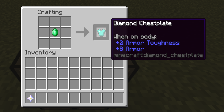 }This results in a diamond chestplate which is not enchanted, seen below in the screenshot with the emerald. No errors are returned in the output log here.