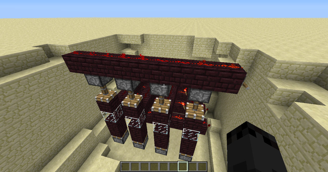 When I flip the lever off, one piston stays extended and will retract only when updated. It may relate to MC-108 still, but only if the cause of the bug is that piston gets updated before another piece of wire to the left of it gets turned off.