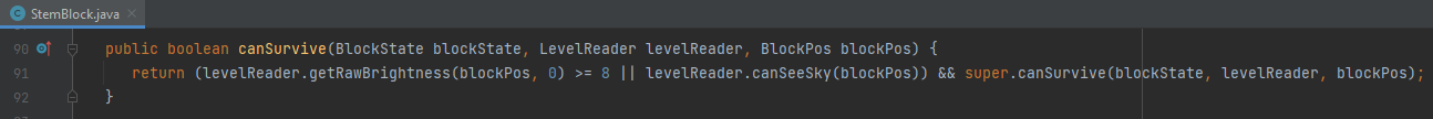 return (levelReader.getRawBrightness(blockPos, 0) >= 8 || levelReader.canSeeSky(blockPos)) && super.canSurvive(blockState, levelReader, blockPos);