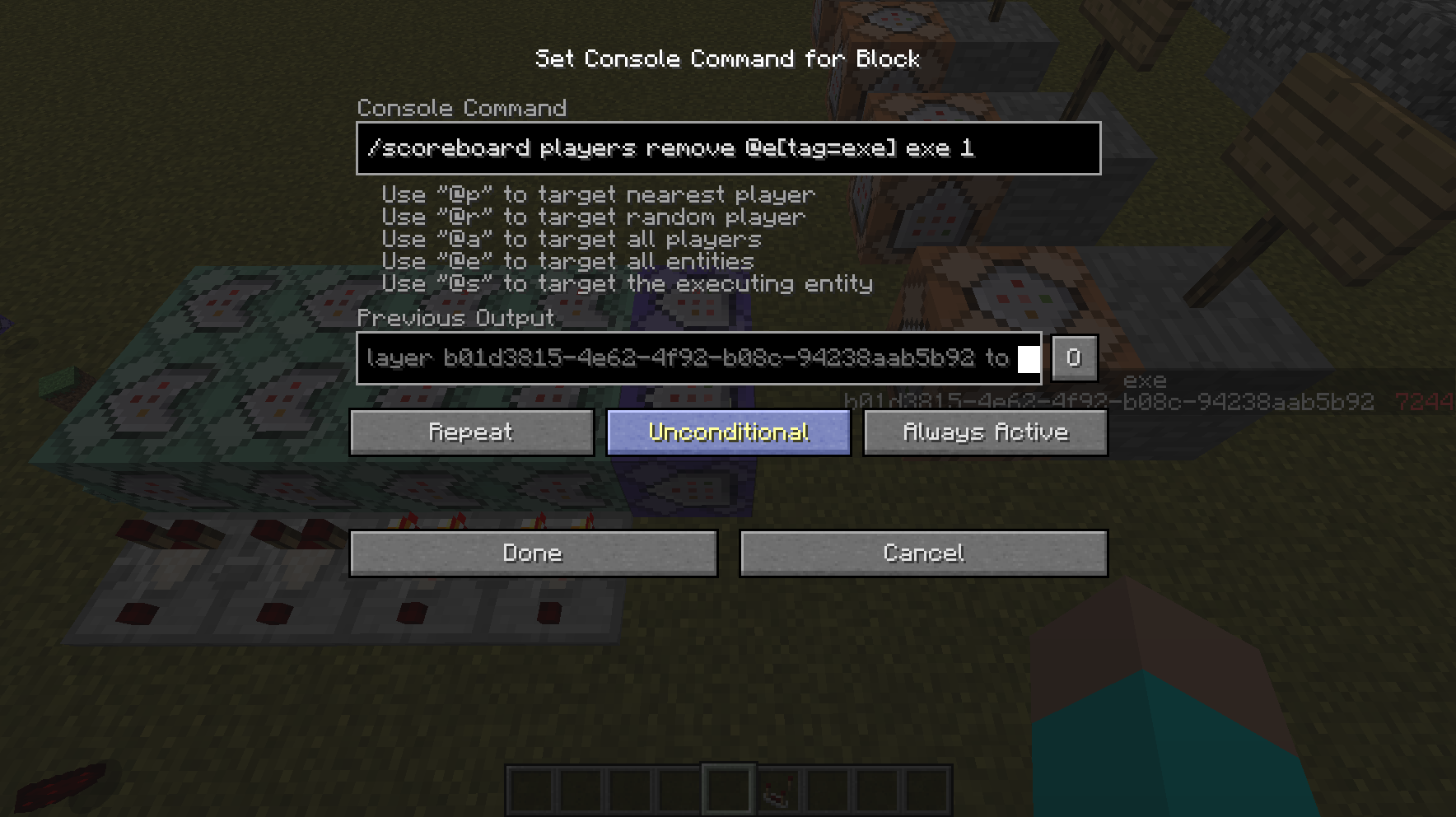 comparators output rs if command block done his thing properly, right? and these coparators are on, but command block is disabled because haven't got rs. and, conditional command block at the end may work only if command block before him work, right? and he work all the time, but command block before him is disabled, so command block at end technically can't work, because he is conditional, but he work.