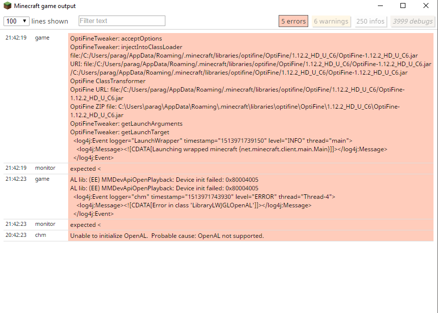 When I launch MC, if Groove is playing a music at the same time, there's no sound in the game and in the logs its wrote that OpenAL can't initialize. The sound works if I close Groove and relaunch MC.