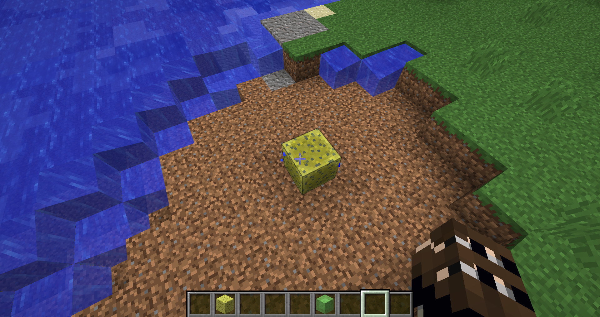 When I place a dry sponge in water it will absorb the water but when I remove the sponge, the water just sits there and doesn't do anything. I can place blocks inside the area. The water only updates itself when a block is place or broken next to it. These pictures show me placing the sponge, the removal of the sponge, me placing the block in the area and the water not changing and me placing a block on the edge to update the water.