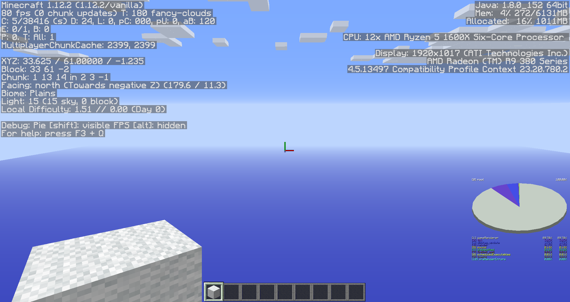 There is very severe lag when moving the cursor over the Minecraft window with a high refresh rate mouse. I'm not sure what mice it affects or if it is limited to Logitech's, but my Logitech G700S causes severe problems when it's refresh rate is above 250Hz. Even if I am in the escape menu and the game is completely paused, I can see the FPS counter drop significantly when moving the cursor over the window. I have seen some complaints about this issue with varying mice, but I can't verify them myself.