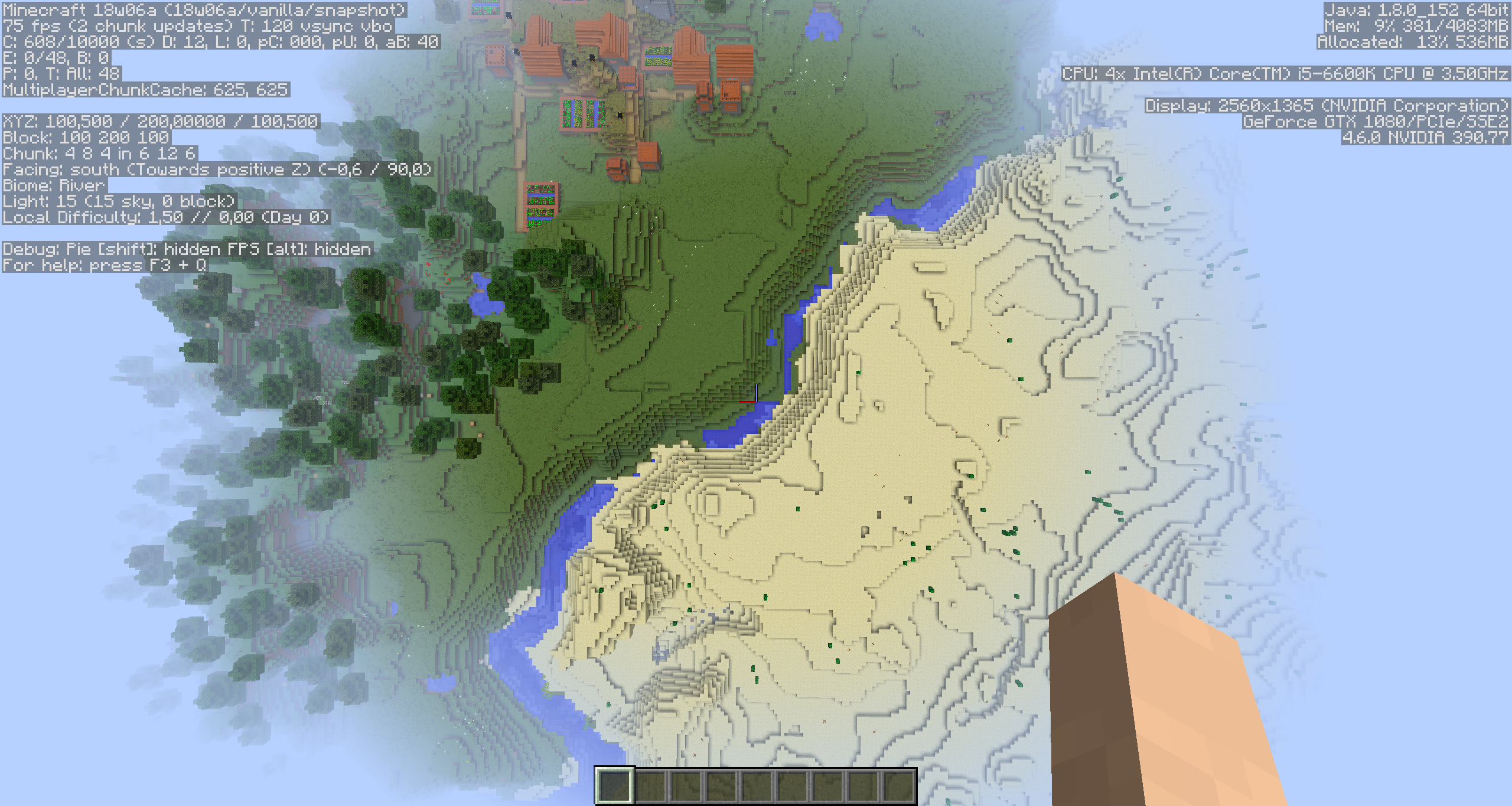 While doing so we noticed at a certain moment that we generated some areas of the terrain differently than before (not meaning the things placed as decoration, but the actual shape of the land). It took a while to figure out why, but it turned out that in the old code, there had been a bug from the beginning. We forgot to reset the seed of a random when we merged rivers and the biomes.