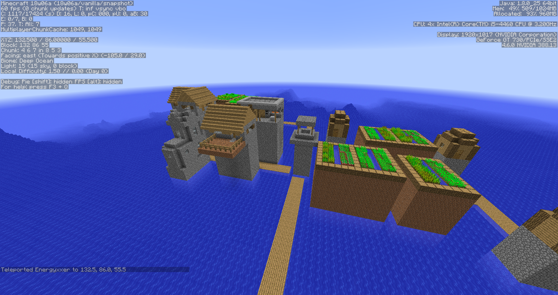 5. Close the world, and without exiting the game, generate a new world with any other seed ( Managed to reproduce both with 3239279967284580547 and -7985168147923234878)