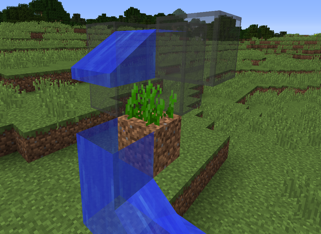 My assumption is that water cannot flow through these blocks yet, but by removing the vertical water textures, these air-filled blocks are disguised to be underwater.