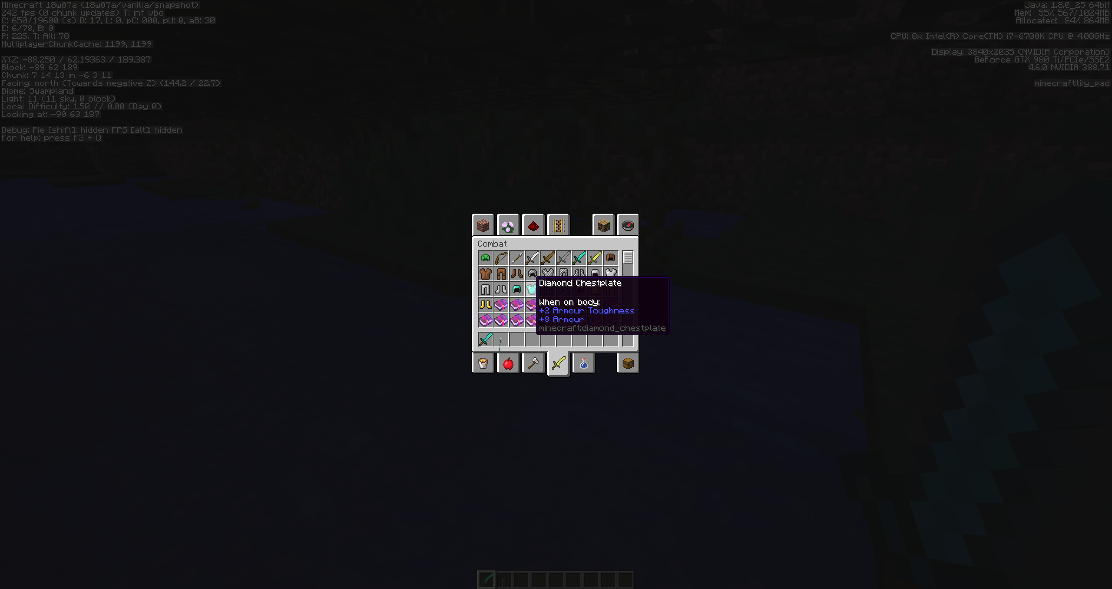 Instead of the usual blue coloured font that displays the attack damage and or speed, it is now white for all the items in Tools, all variants of the swords and all of the enchanting books. (Plus the new Trident).