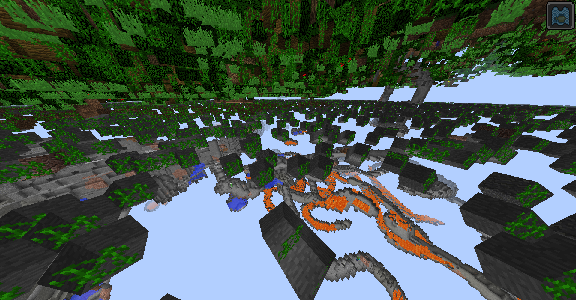 It seems to be a problem with the vine generation as all holes are filled with vines. They generate exclusively at y=64. May be the cause of the problem of the low framerate as described in MC-125283.