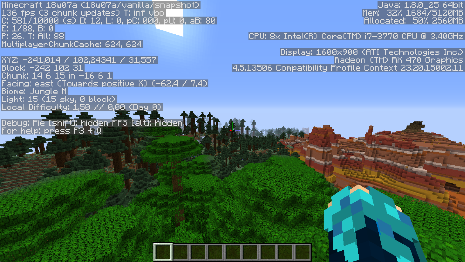 I have fps drops in the jungles of 18w06a when the world generator changed, I also felt that the jungles are with more trees, when I look at another biome the fps is above 100 when I look at the jungle it has a drop to 40, 30, 20.
