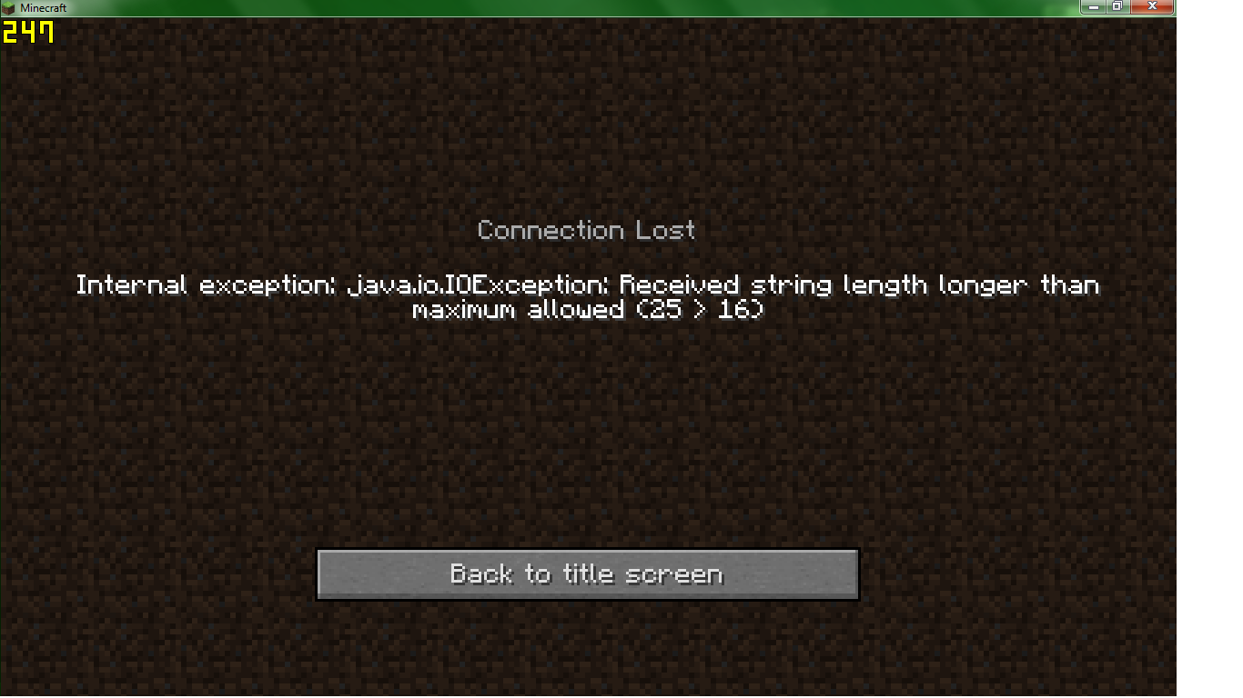 When i try to connect to my server This is displayed "Internal exception: java.IOException: Received string length longer than maximum allowed (25 > 16. Also displayed of friends computer when trying to join LAN