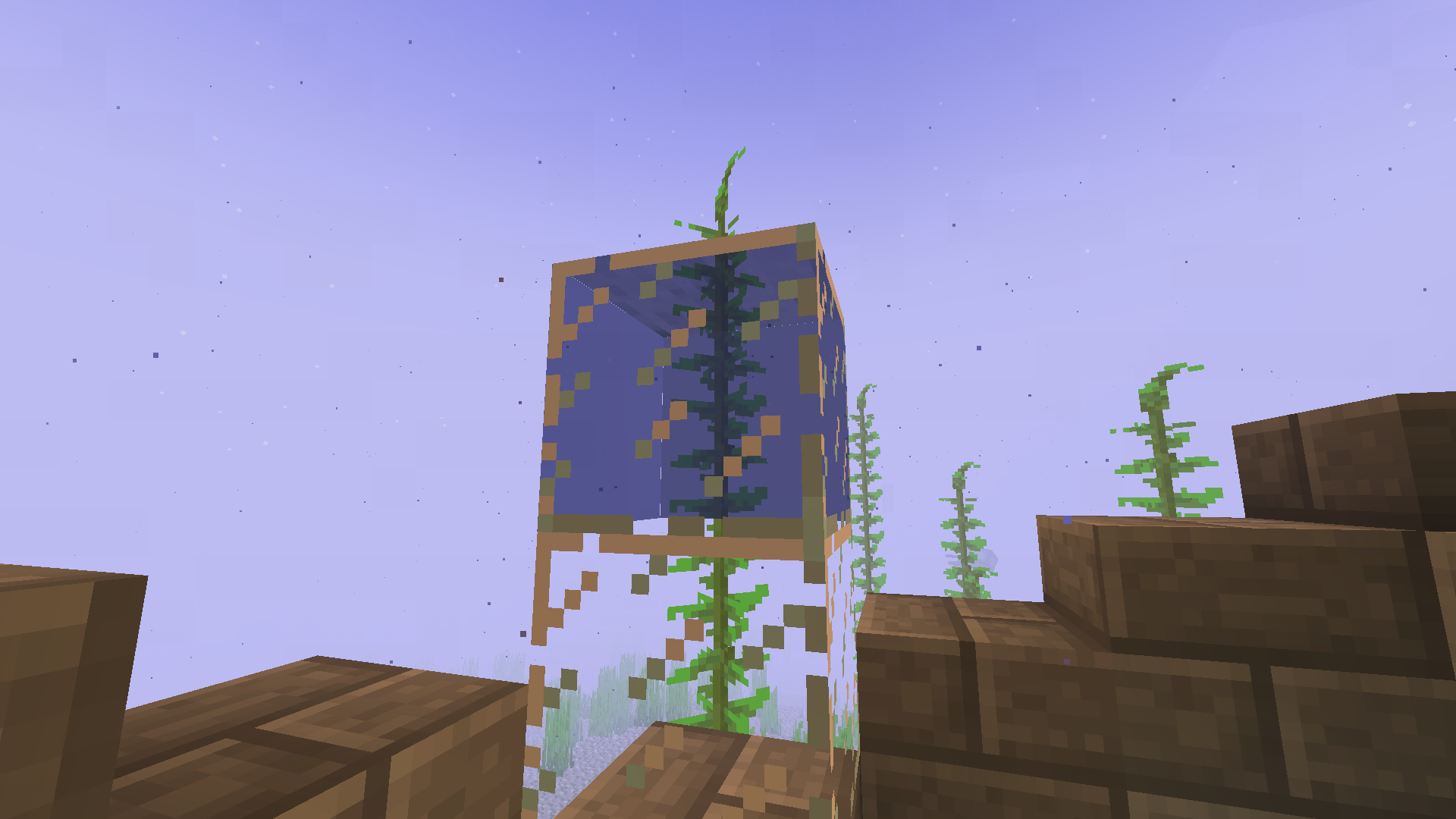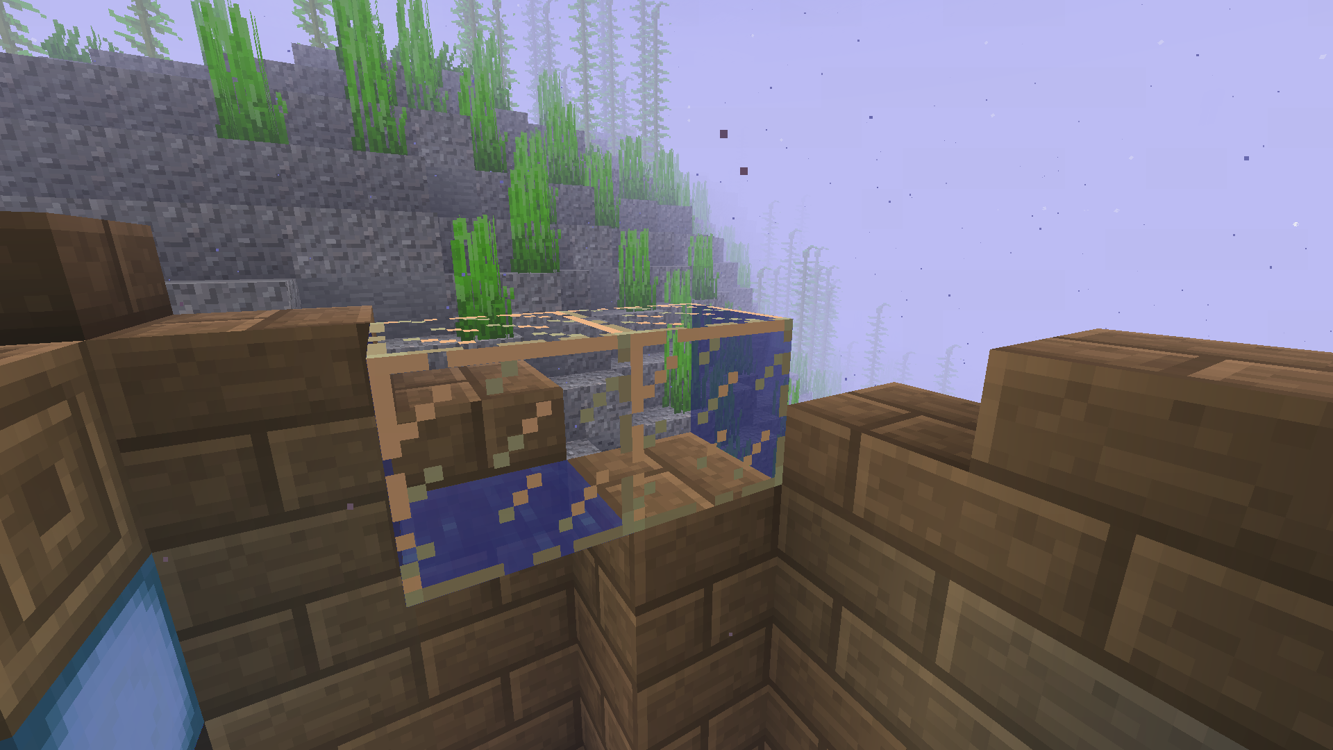 When underwater, glass will sometimes be covered with water and other times not, it seems to be transparent when surrounded with slabs but renders wrong without them. When the glass is surrounded with other glass, water renders on the sides again.