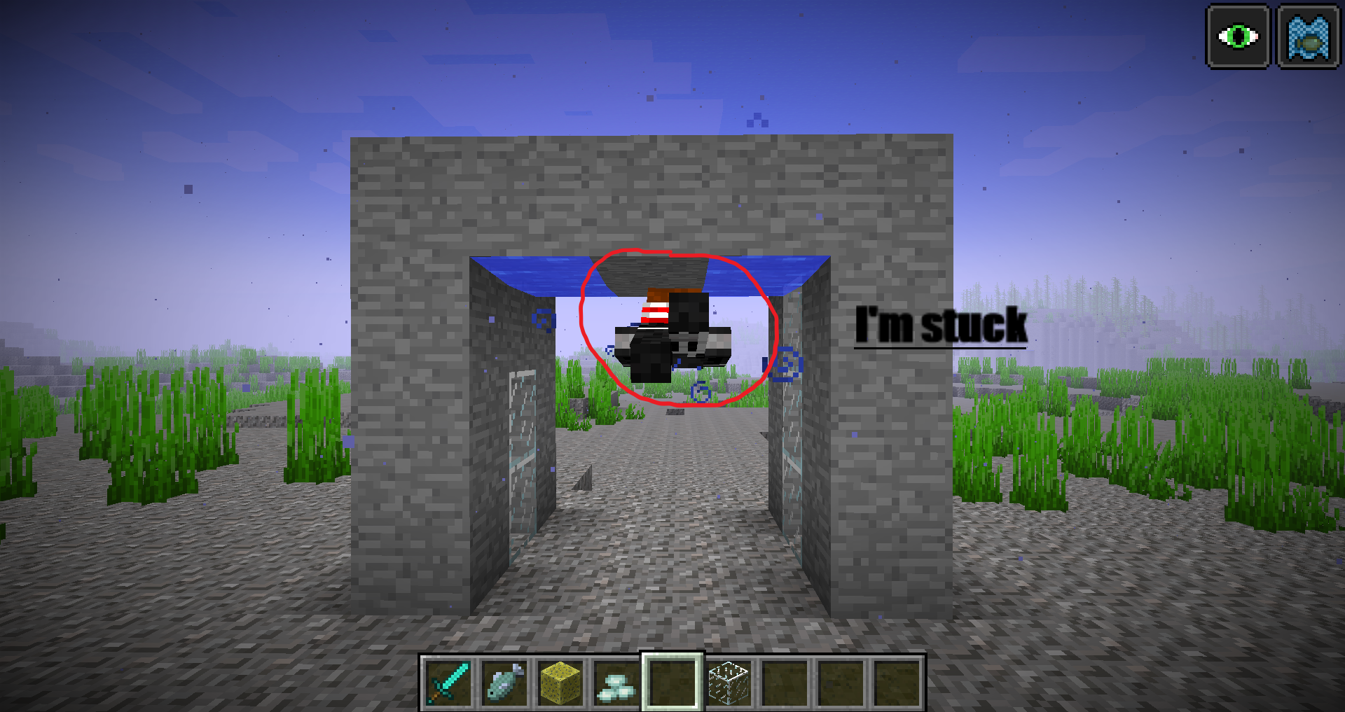 If you swim and what a block is above you. You cannot past you bounce on the spot