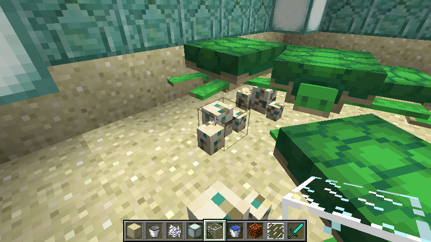Adult turtles appear to float above turtle eggs - there is a gap between the egg and the turtle. It looks like they are crawling/swimming in air.