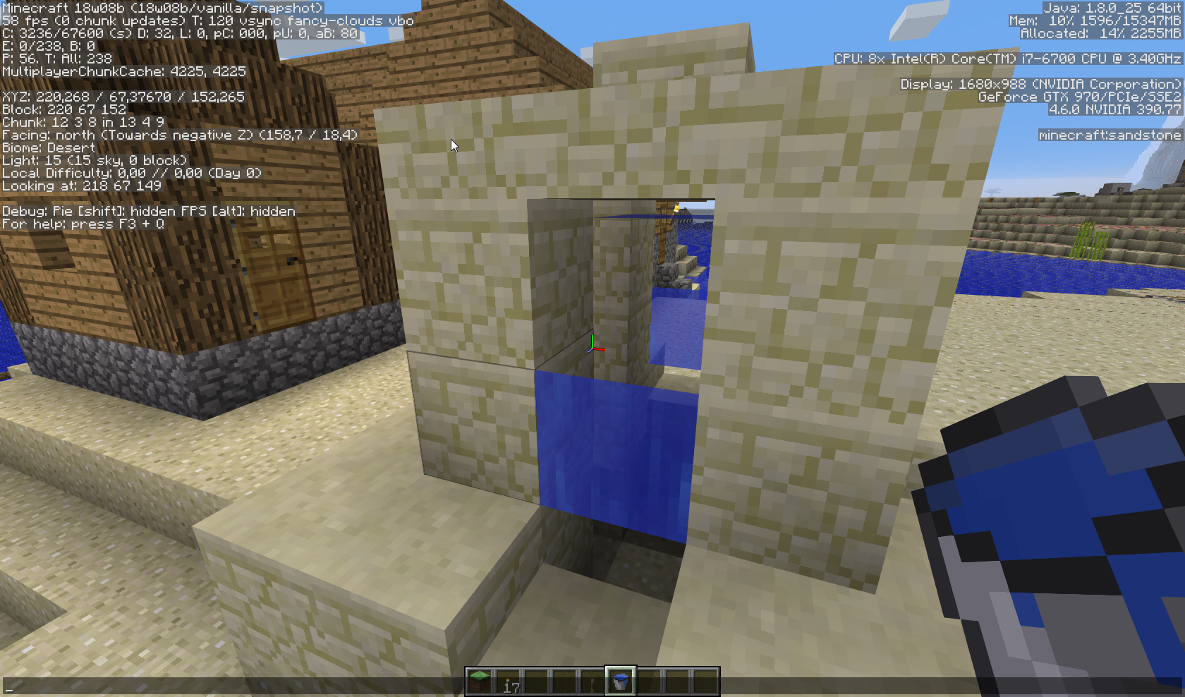 Water texture isn't always rendered correctly when viewing from a side of half-blocks (stairs, slabs etc).