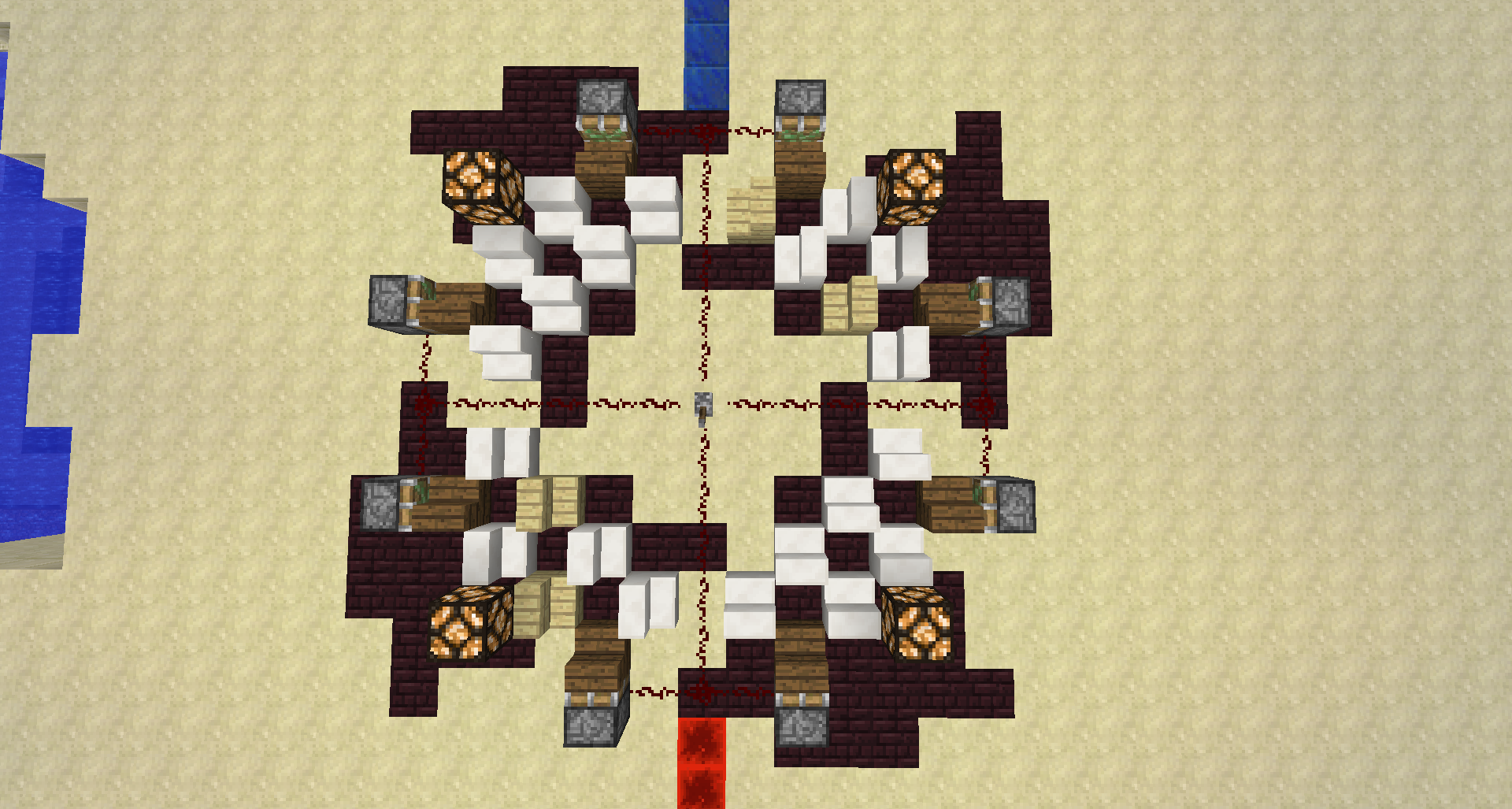 Stair placement is directionally inconsistent. I was trying to make an octagonal roof. If you follow a pattern of rotational symmetry, (imagine the underlying stair arrangement is like a wiggly swastika) then every corner has one 'one-stair' that should be a 'three-stair'. The errant stair block is shown using quartz steps in the stairbug3 image. Or, you /can/ get two directions 100% correct as per stairbug4, but the other two directions will be wrong, and trying to fix them one block at a time causes the problem to spread until you end up with stairbug3 again.