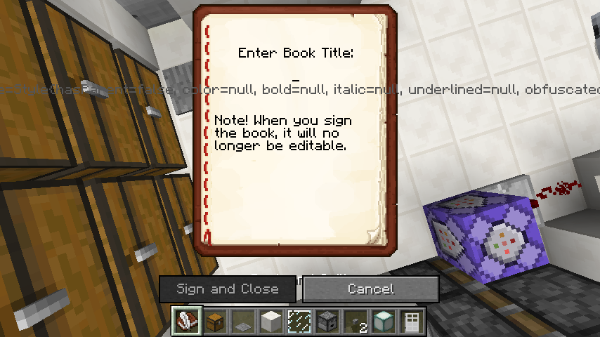 When i sign a Book, under the Title, it lists the styling information about the Author of the Book instead of just the plain text. (After the book is Signed, in the Inventory, it looks normal.)
