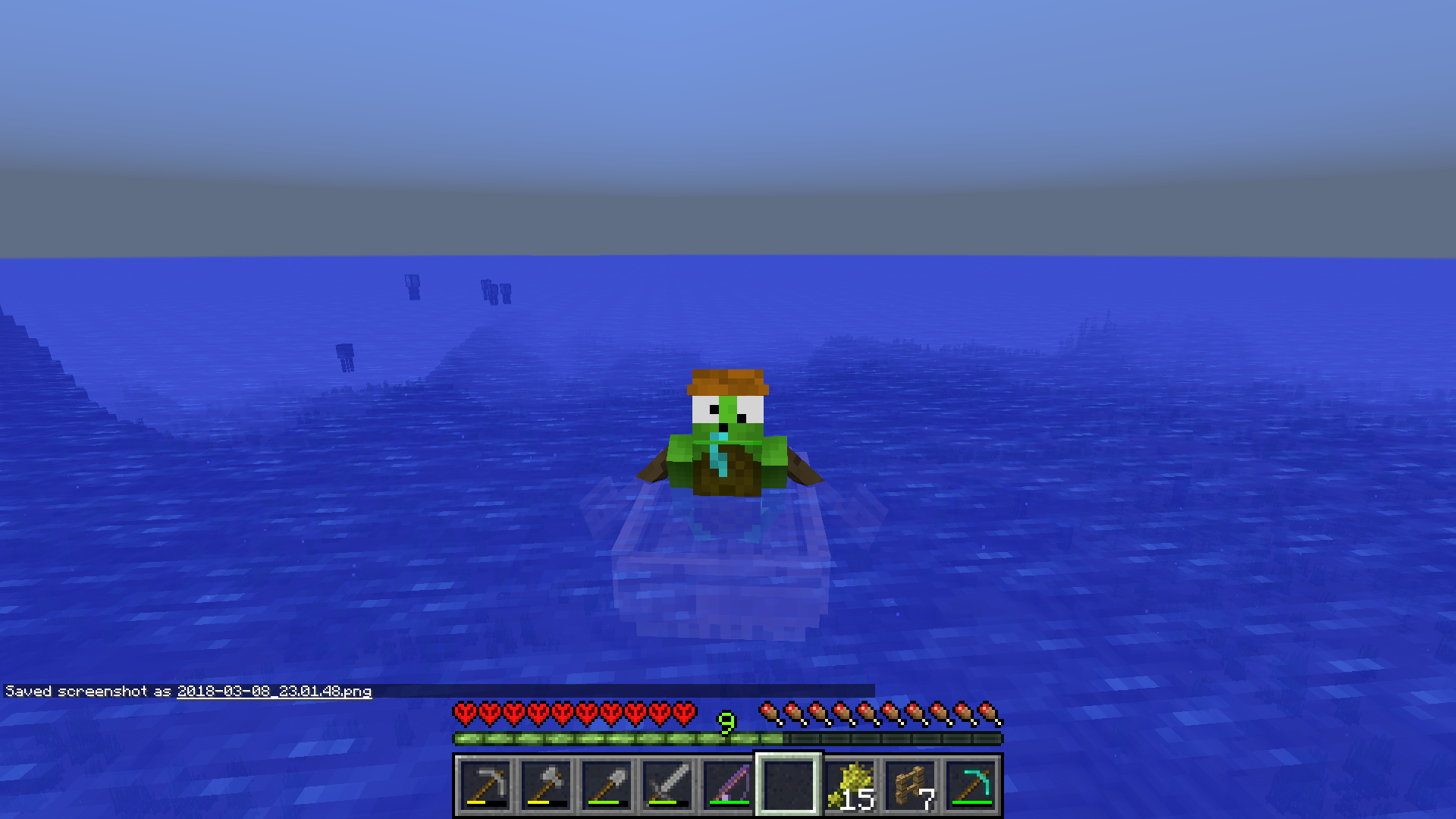 When placing down a boat in the water, it seemed to be slightly submerged. I tried this a few times, but placing down a boat in water seems to do it almost 100% of the time. Once you're in the boat, the boat suddenly begins to bob up and down while you're riding it. These new bubble columns are also causing a problem: Once you come in contact with your boat in the columns, they seem to make the boat sink, the boat is still ridable which I expected, but the problem is that you do not begin to suffocate and you can still move the boat around under water.