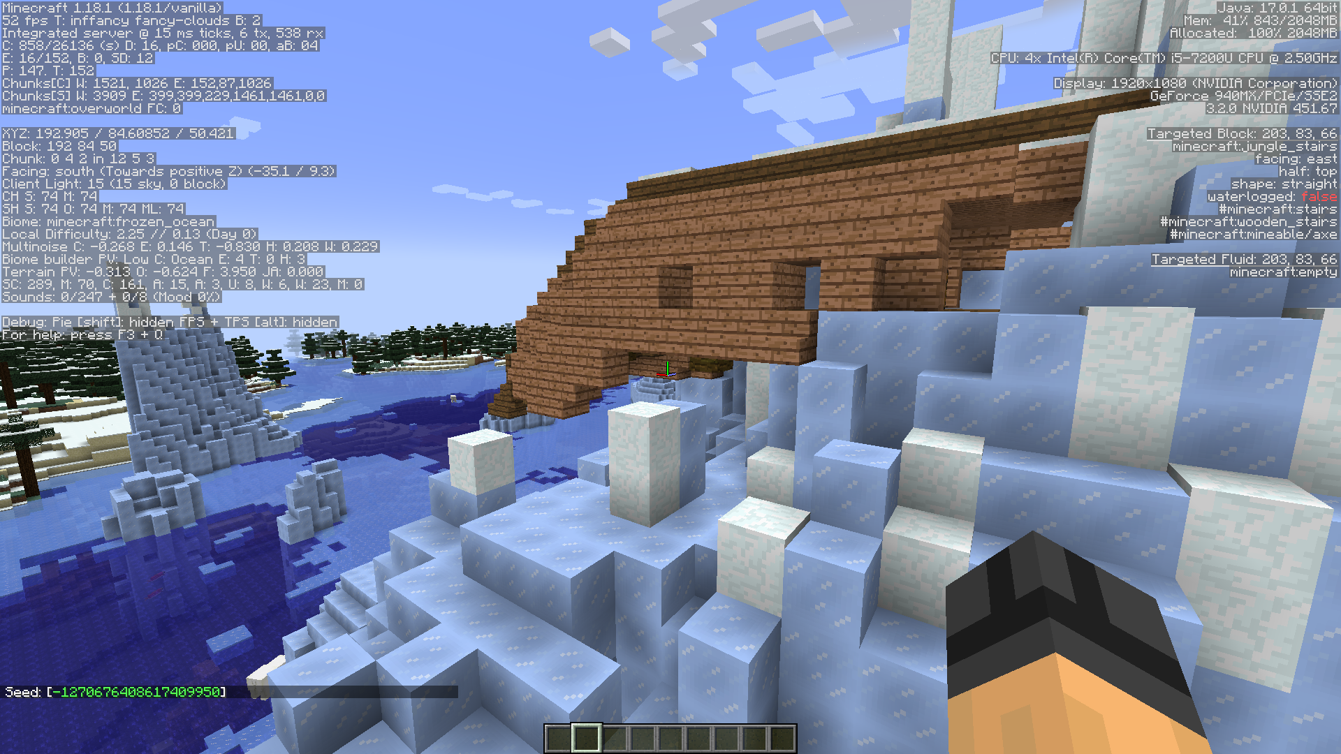 /tp @s 7280 80 -3344Case where shipwreck spawns not nearly touching land. According to grum it should spawn more in the ground.