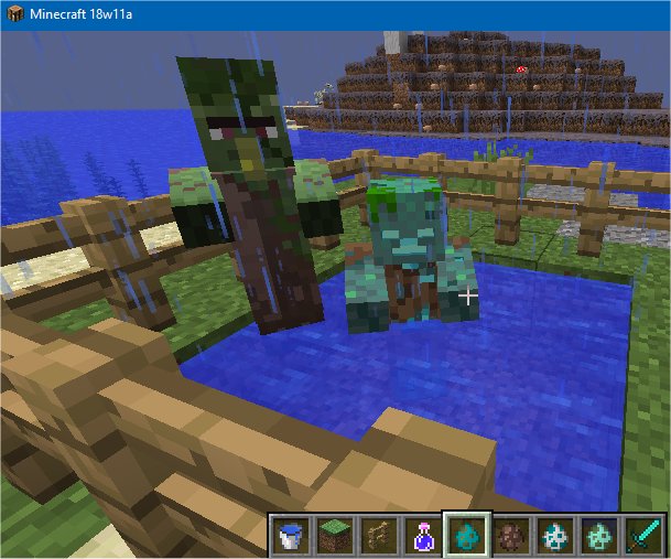 However normal Zombies now act like Drowned. They walk on the bottom of the water instead of bobbing and they are super slow (MC-127248). They will chase villagers and will attack them and turn them into Zombie Villagers, unlike Drowned who won't actually attack villagers unless it is night (MC-127247 & MC-127294).