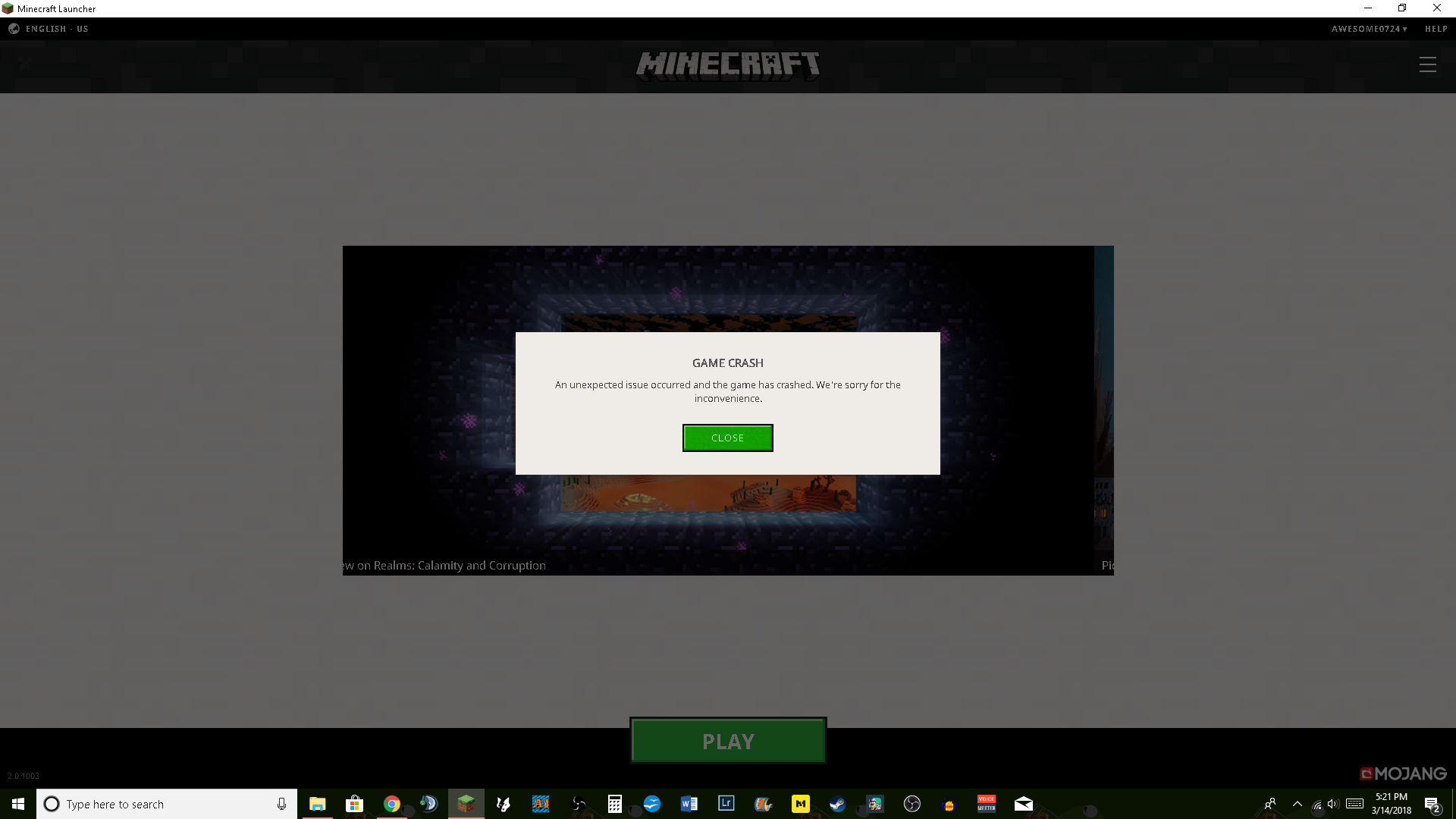 Every time I try to start up the game, the launcher loads up, a Minecraft window pops up for a split second, then it crashes and takes me back to the launcher with an error reading "An unexpected issue occurred and the game has crashed. We're sorry for the inconvenience" (provided a picture down below). I'm not using forge or anything, I'm just trying to run the game regularly. I also provided a text document that I think is the crash log. I'm not sure if that's it or not though because whenever this happens it doesn't show up in my crash-reports folder. Hope someone can help me out, thanks