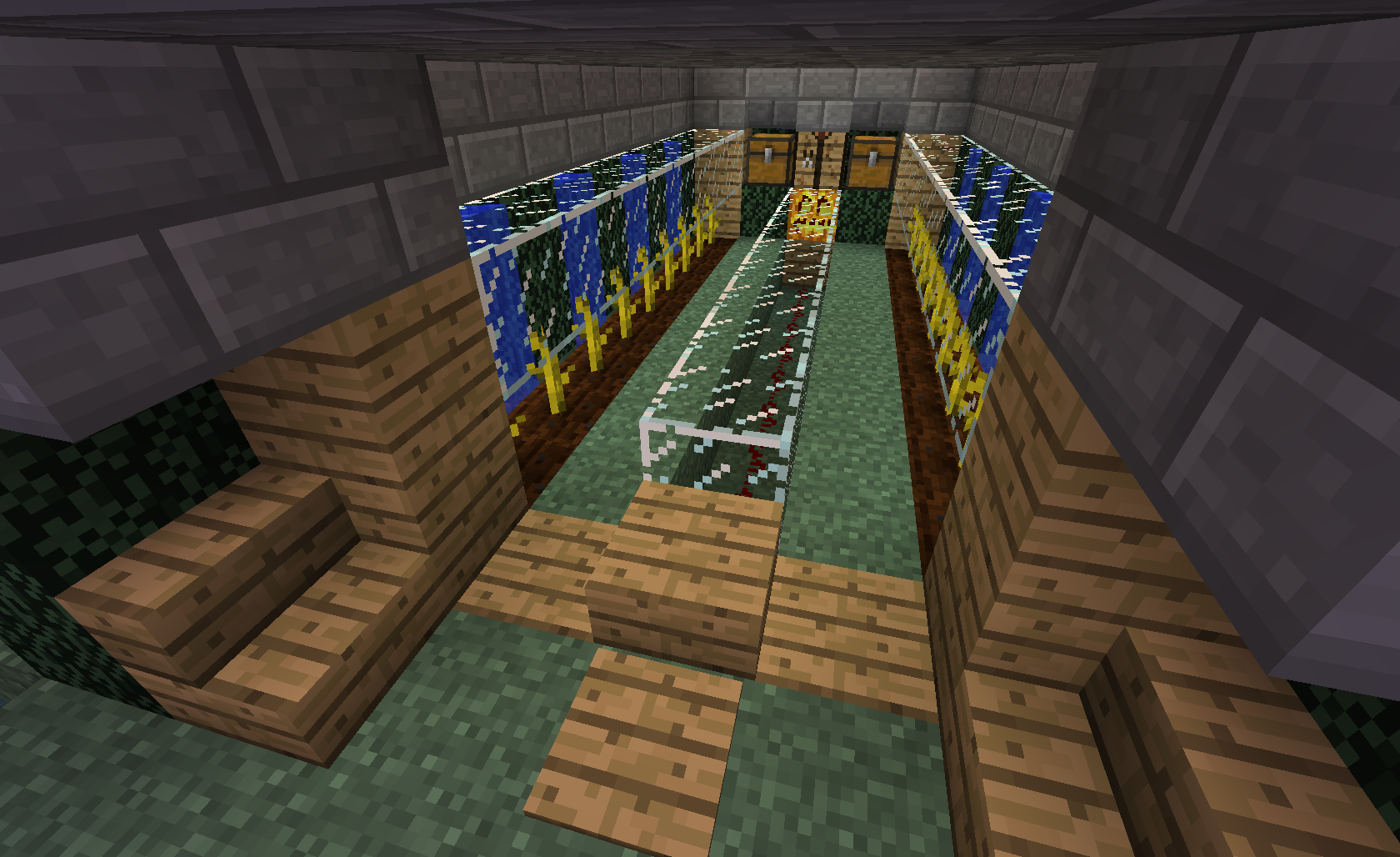 The first 3 files are of the pumpkin farm. The first shows the farm normally and deactivated. The second shows the farm stripped down. The third shows the farm stripped down and activated. The last picture is the untouched interior of my skeleton grinder. This is not the one mentioned in the description, this one is in my current world with the pumpkin farm. I haven't been anywhere near it since 1.4, but when I went to grind today, I walked in and everything was gone. I hadn't hit any buttons, and there were no water leaks. For some reason, the torches that used to be in there were gone as well.