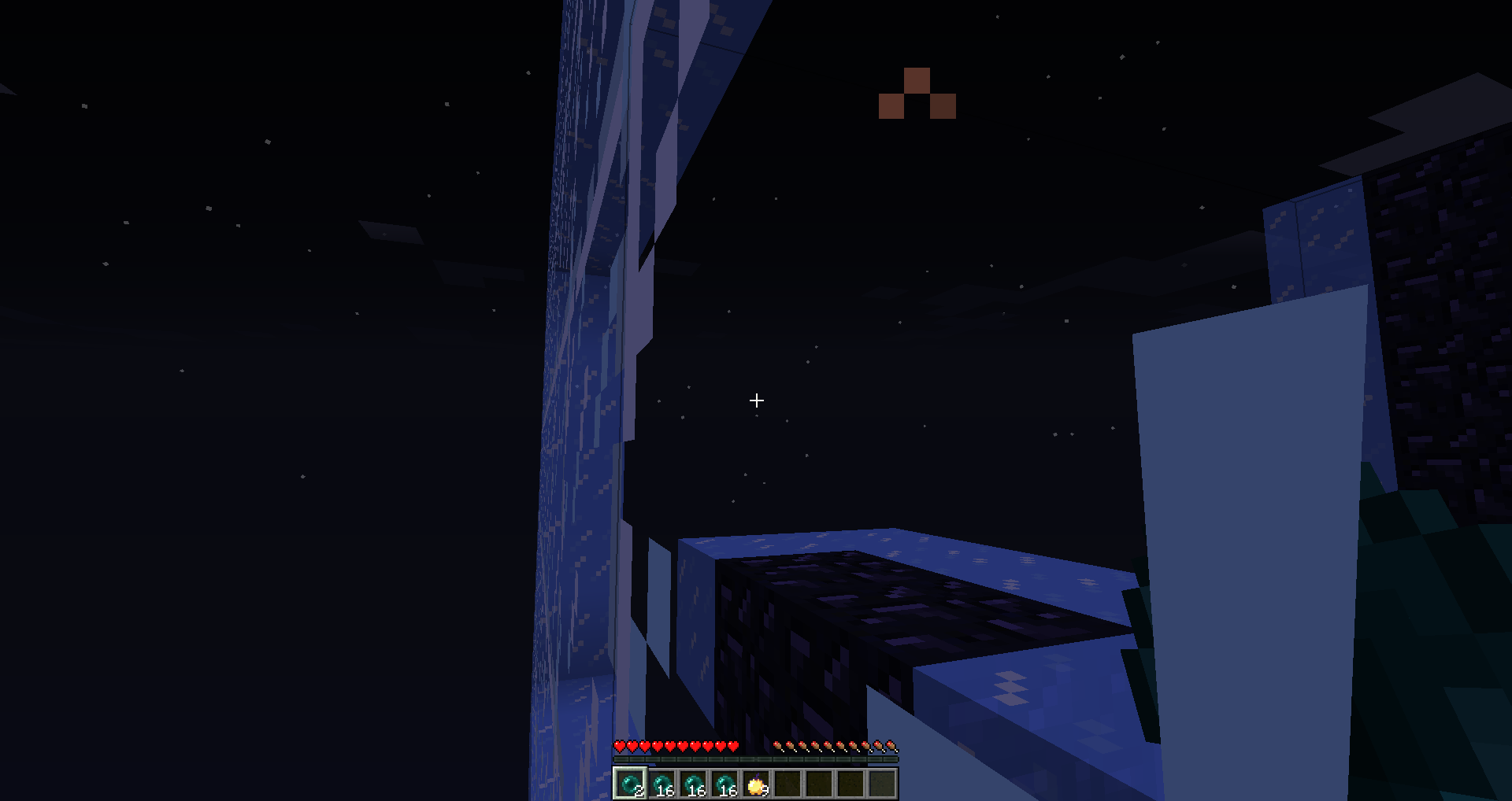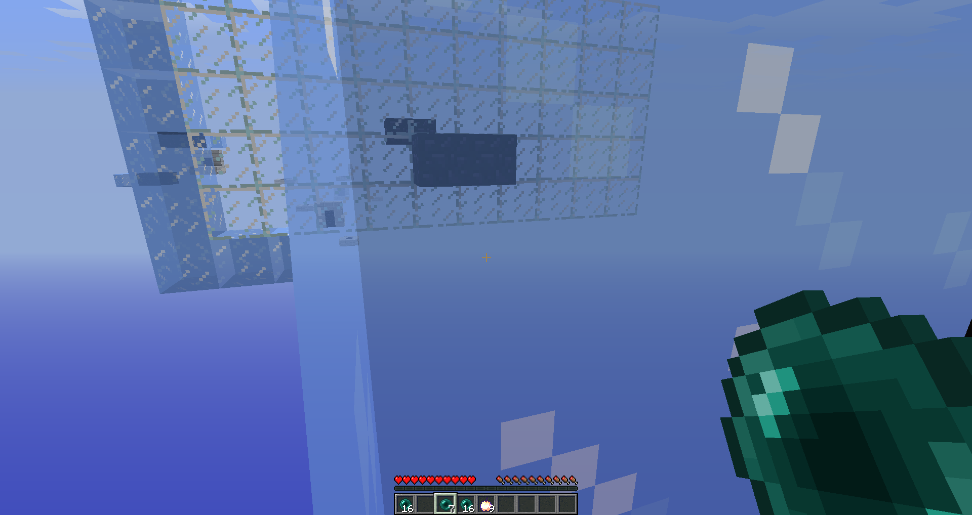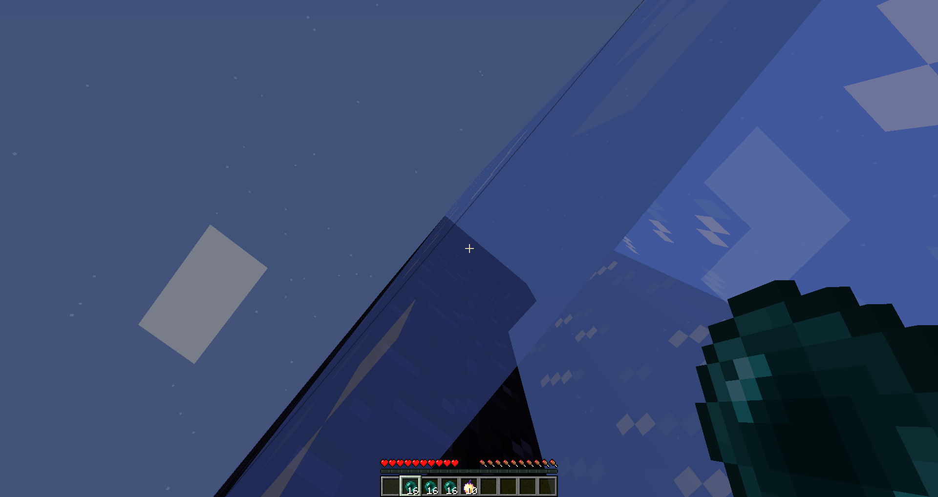 1. Launch the first Ender Pearl on the block of ice/glass so that the player remains suspended in the air