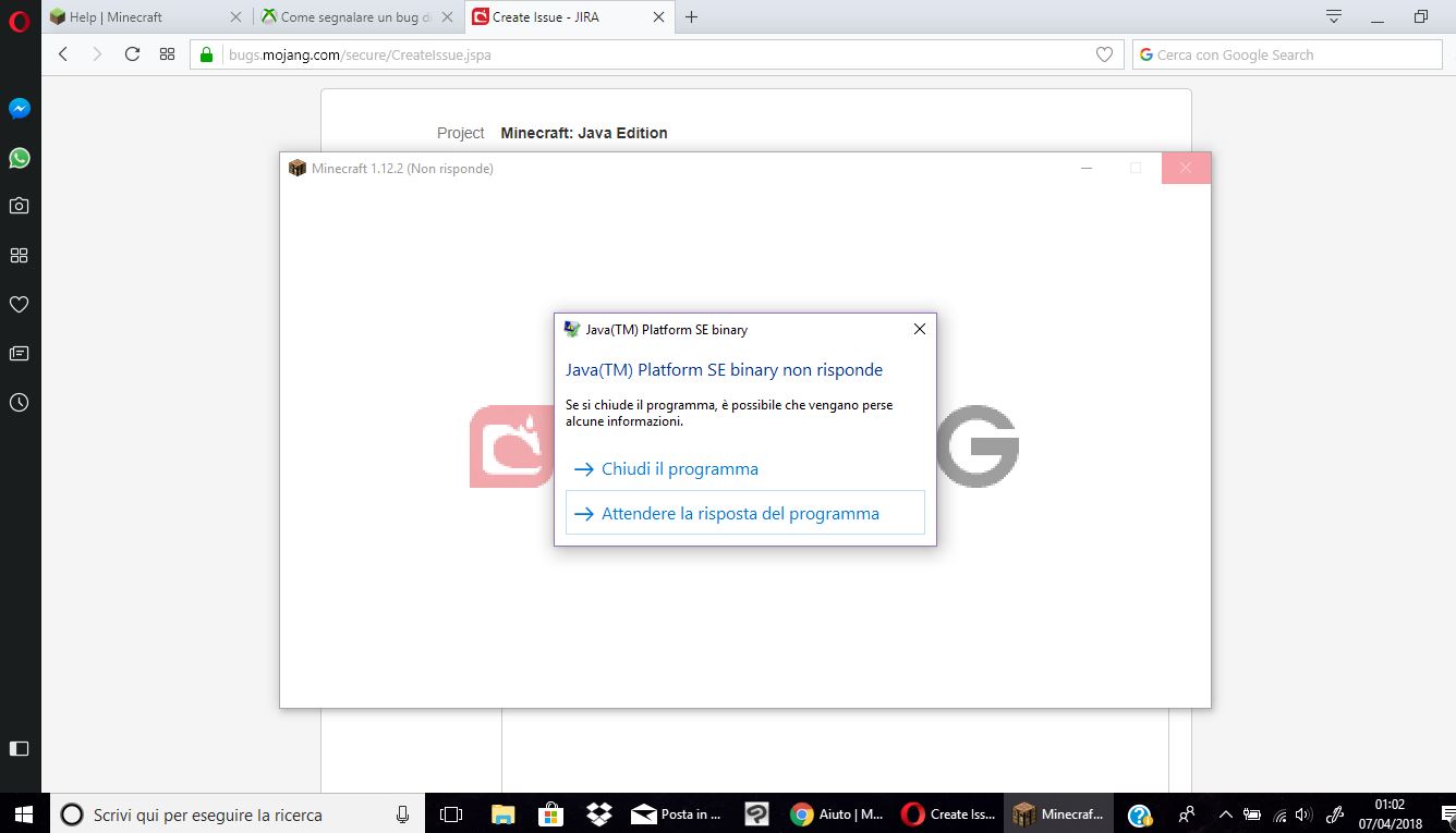 When i open the Minecraft game, it appares to me at the top left that the program isn't responding. Later it invites me to close the game, and i can't play.