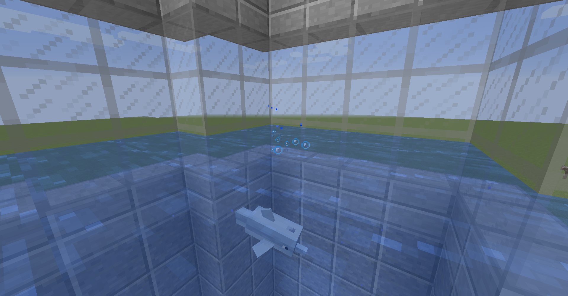When moving with two solid blocks on either side, dolphins will sometimes take block suffocation damage. The place where they are taking damage is posted below.