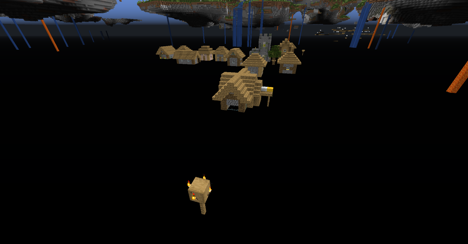 Mineshafts, strongholds and villages spawn in the air, in the buffet "Floating Islands" world generation.