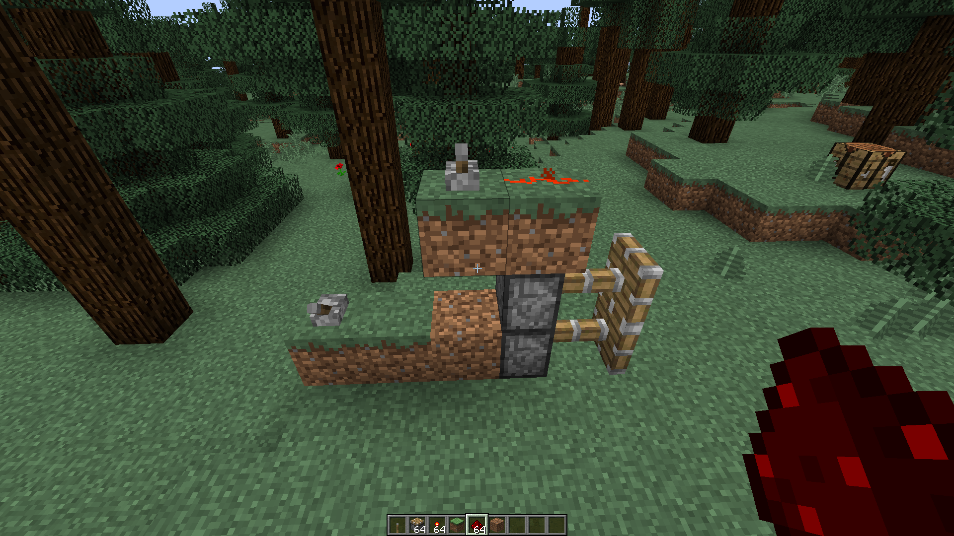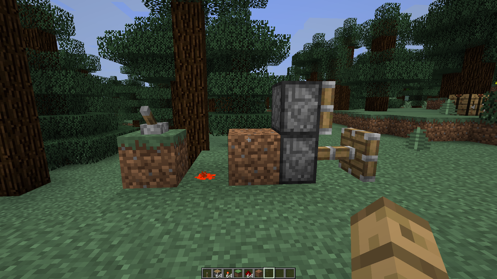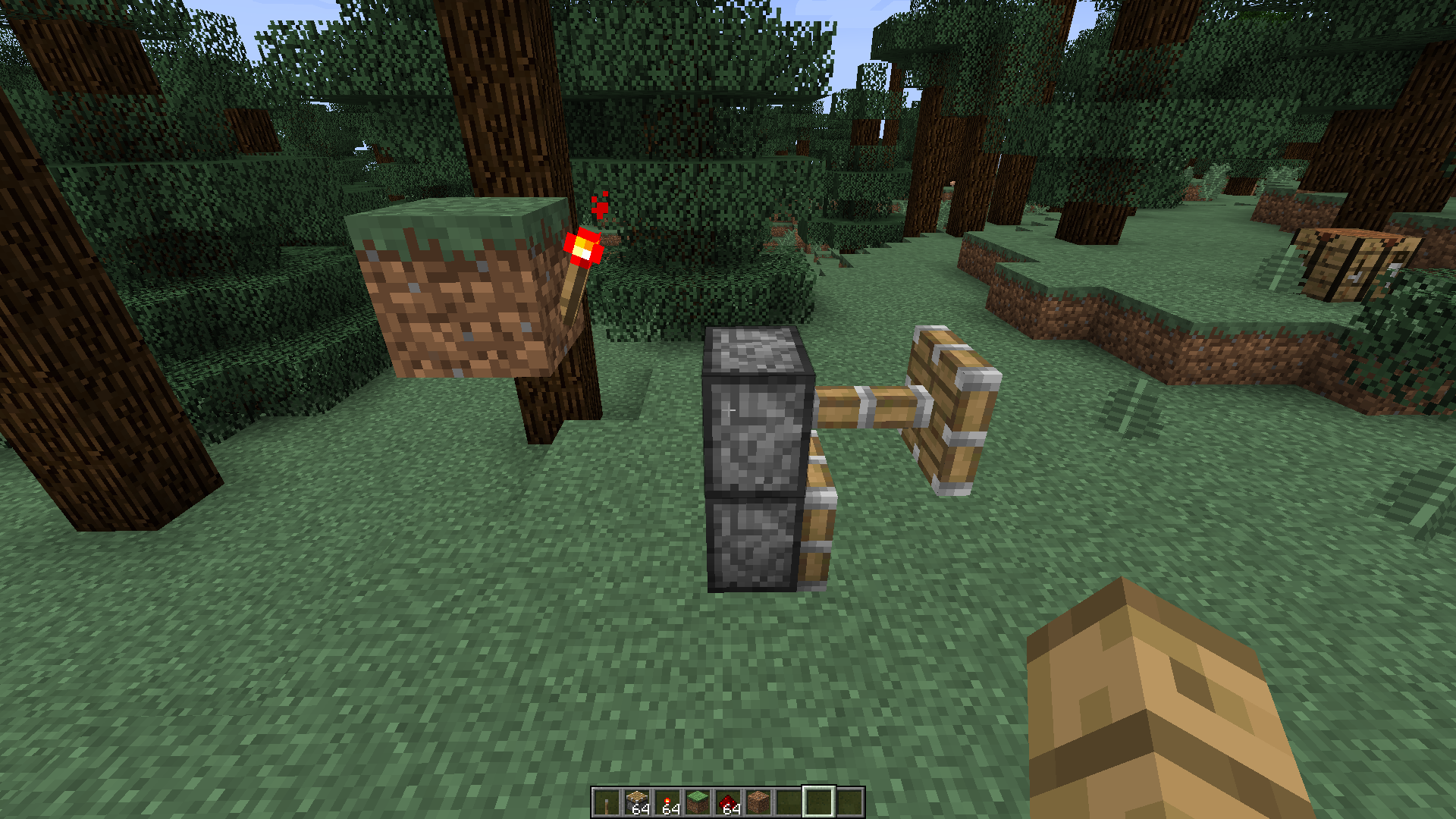 When 2 sideways-facing pistons are stacked on top of each other, and the top one is powered using a redstone dust signal, both pistons extend and retract.