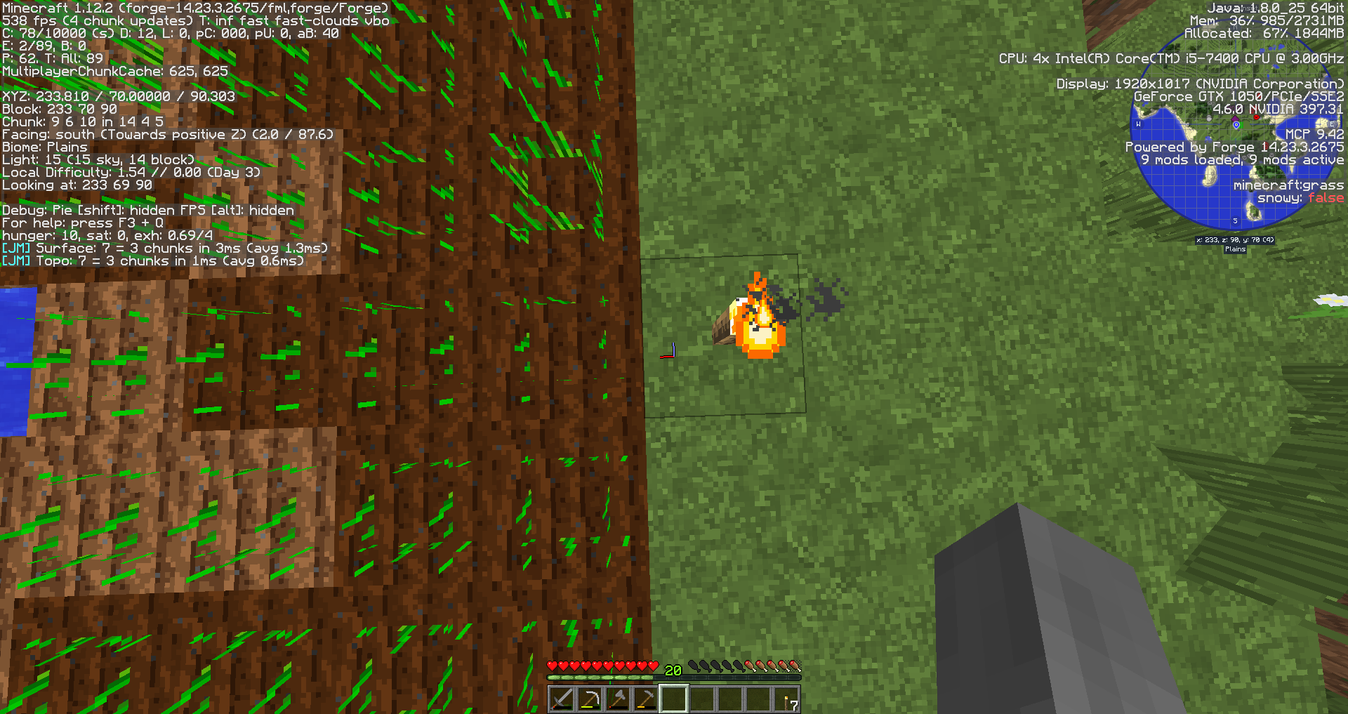 When you are walking or standing on plowed land it does not shows the light level as 0 but if you shift over the top of the plowed land it shows the correct light level, as you can see in the pictures provided. Hopefully that helps 🙂